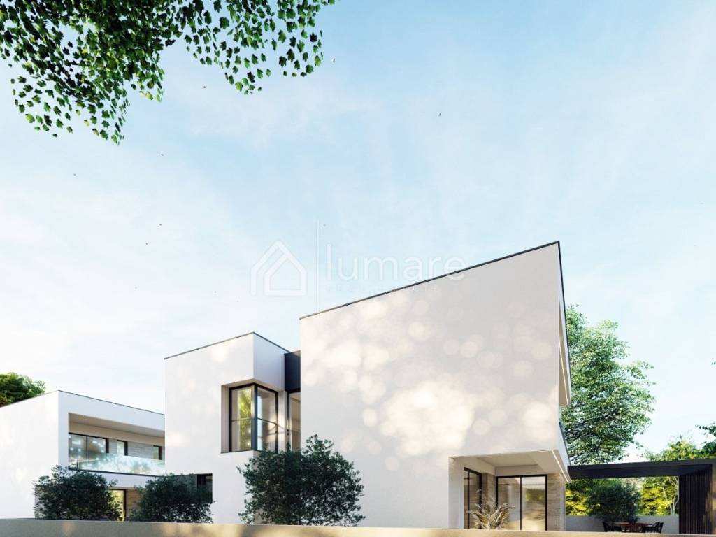 Piano e contenuti Ogni villa si sviluppa su due piani, con circa 180 m² di spazio abitativo su un terreno di 400 m²: