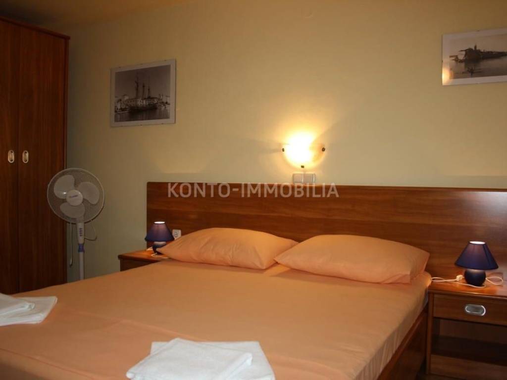 La struttura è composta da un seminterrato con un monolocale (attualmente utilizzato come ripostiglio). Al piano terra si trova un comodo appartamento con due camere da letto e altre due camere da letto con bagni con ingresso indipendente sul retro. Al primo piano ci sono due appartamenti con terrazze, al secondo piano. Al primo piano c'è un grande appartamento per 10-12 persone, che può essere affittato come due appartamenti per 5-6 persone ciascuno. L'attico della casa non è occupato, ma c'è la possibilità di decorare un ulteriore monolocale. Oltre alla proprietà di base, la struttura dispone di spazi aggiuntivi - garage, lavanderia, stendibiancheria, piscina piscina - WC e simili.
