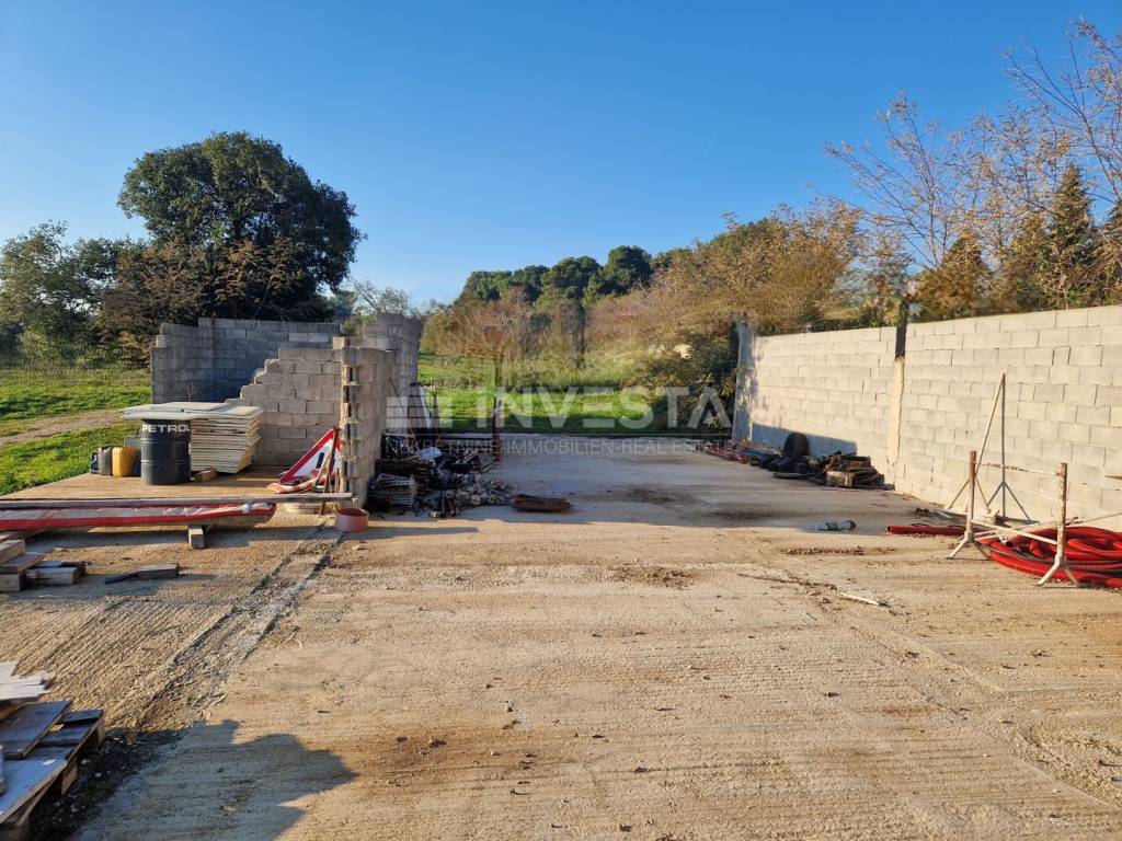 La parte edificabile è di 288m², mentre la parte agricola è di 475m². Si trova a 5 minuti di auto dalle prime spiagge, dal centro di Pola e da Fasana. Le infrastrutture sono nelle immediate vicinanze in quanto il terreno si trova in un quartiere residenziale accanto a case familiari e alla strada principale.