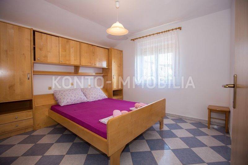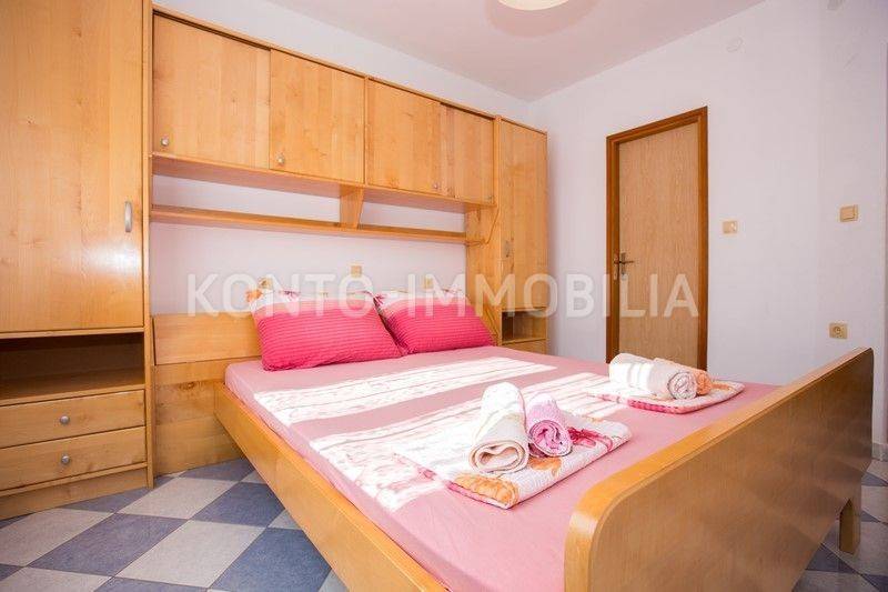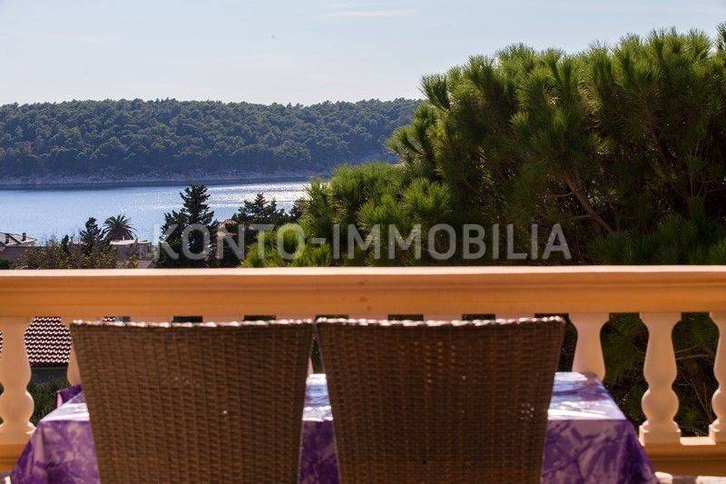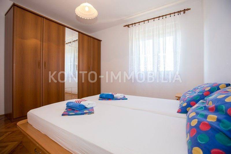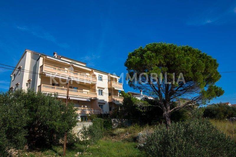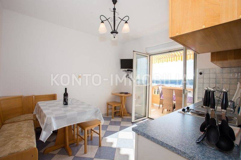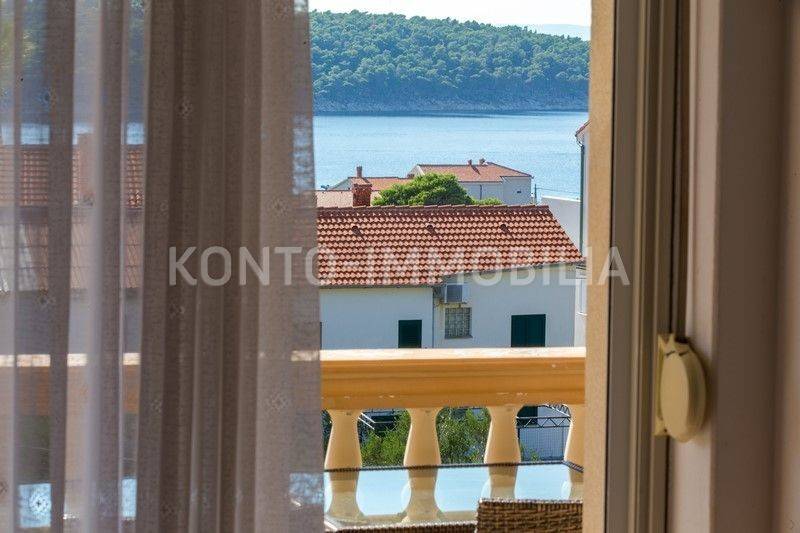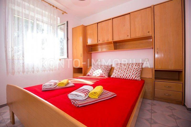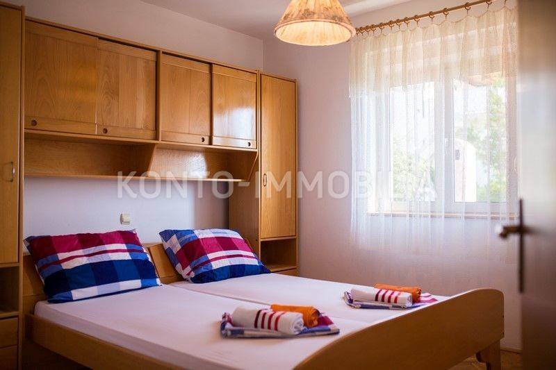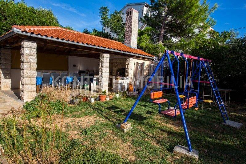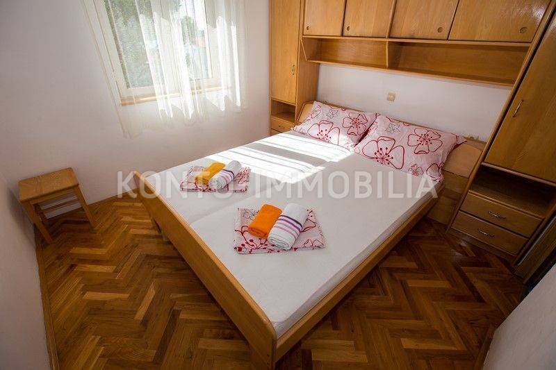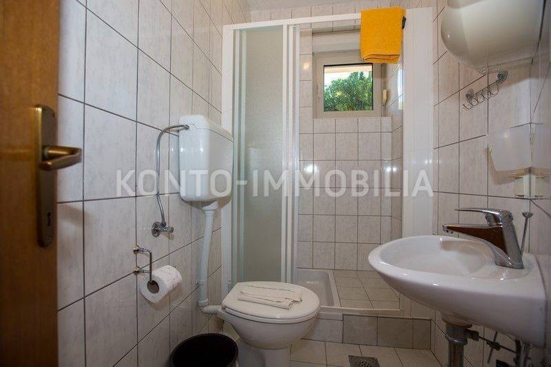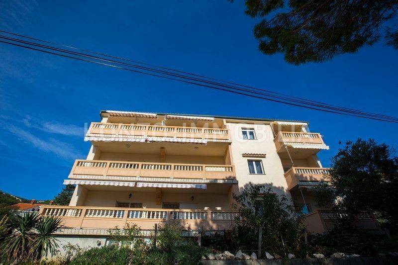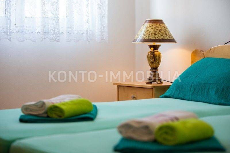 Palazzina con bellissima vista mare e ampio giardino. Si compone di un piano seminterrato dove si trovano autorimessa, taverna, due deposito, wc con doccia e disimpegno, e piano terra, I. e II. piani e sottotetto con un totale di sette appartamenti. Gli appartamenti sono 2M + soggiorno o 3M + soggiorno, con ampi terrazzi, completamente arredati, dotati di tutti gli elettrodomestici e climatizzati. La casa dispone di un ampio e curato giardino con barbecue all'aperto e un'area coperta per piacevoli ritrovi e un angolo per i bambini. Accesso diretto al mare. I proprietari affittano appartamenti da molti anni.