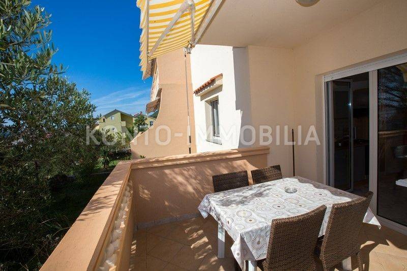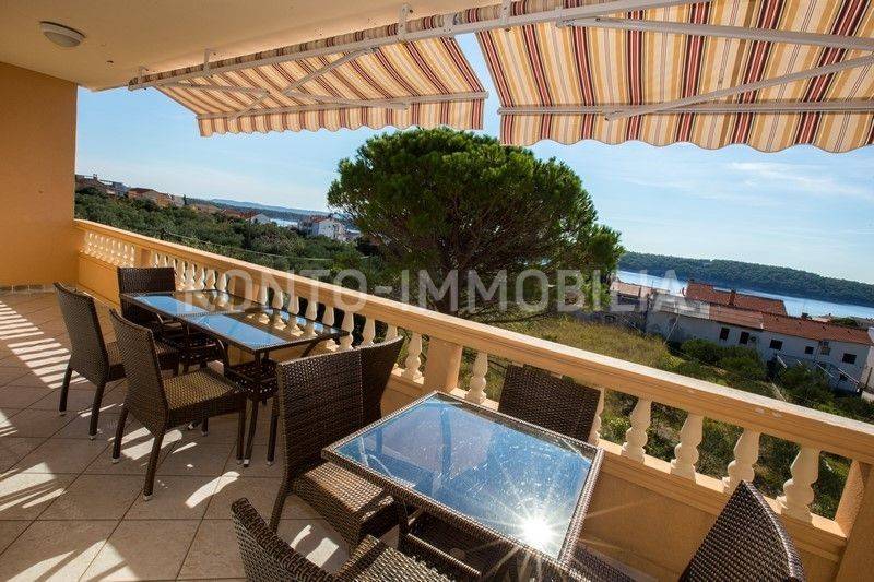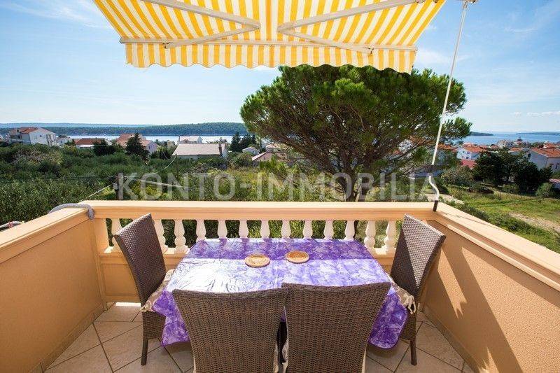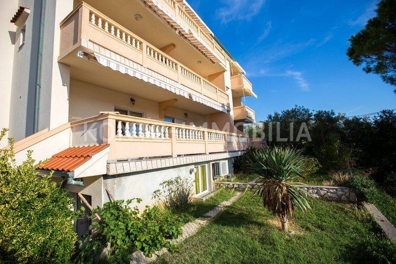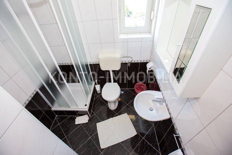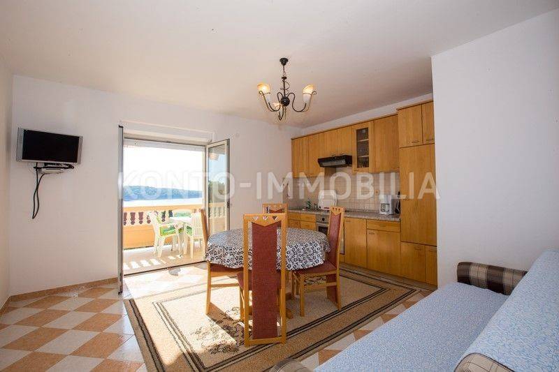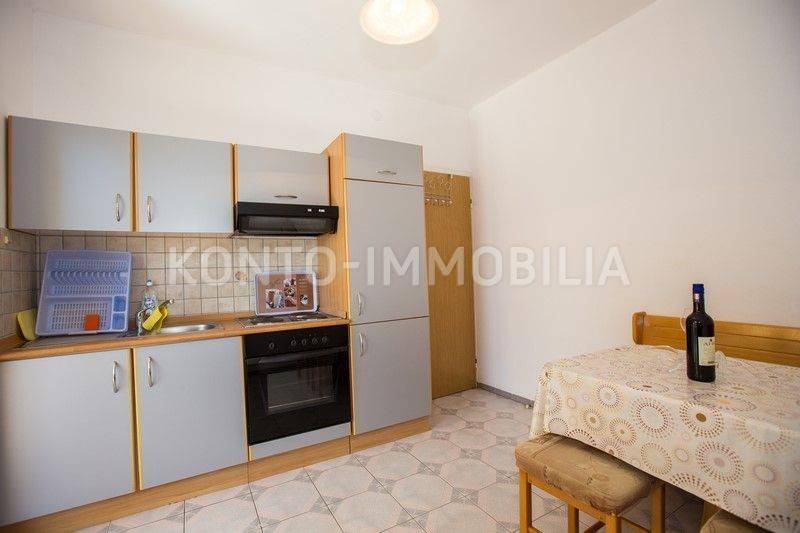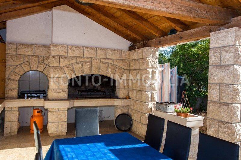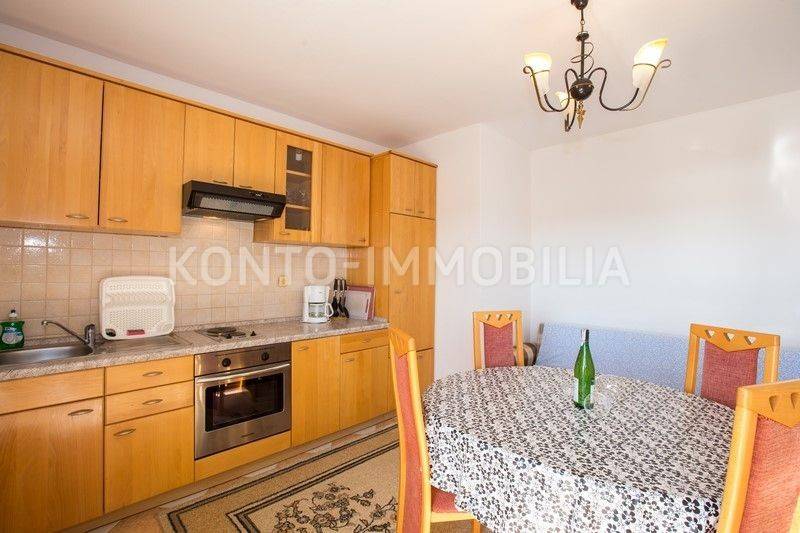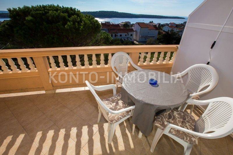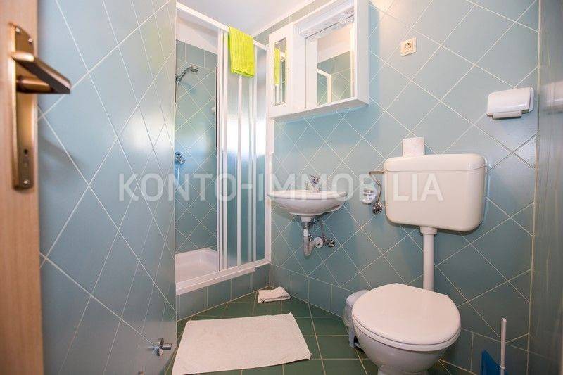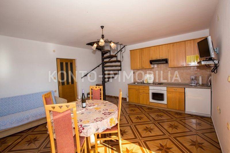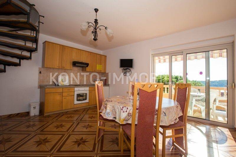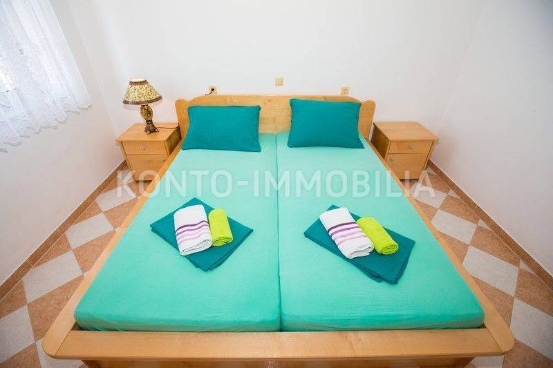 Palazzina con bellissima vista mare e ampio giardino. Si compone di un piano seminterrato dove si trovano autorimessa, taverna, due deposito, wc con doccia e disimpegno, e piano terra, I. e II. piani e sottotetto con un totale di sette appartamenti. Gli appartamenti sono 2M + soggiorno o 3M + soggiorno, con ampi terrazzi, completamente arredati, dotati di tutti gli elettrodomestici e climatizzati. La casa dispone di un ampio e curato giardino con barbecue all'aperto e un'area coperta per piacevoli ritrovi e un angolo per i bambini. Accesso diretto al mare. I proprietari affittano appartamenti da molti anni.