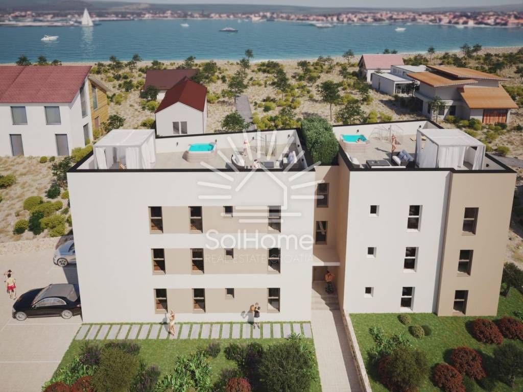 A soli 100 metri dal mare, seconda fila dalla costa, questi moderni appartamenti offrono una vista mozzafiato sul mare da ogni angolo, in un ambiente tranquillo ed esclusivo.