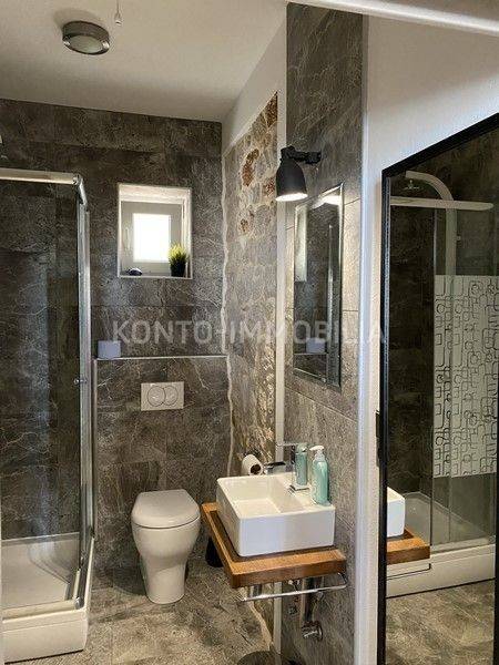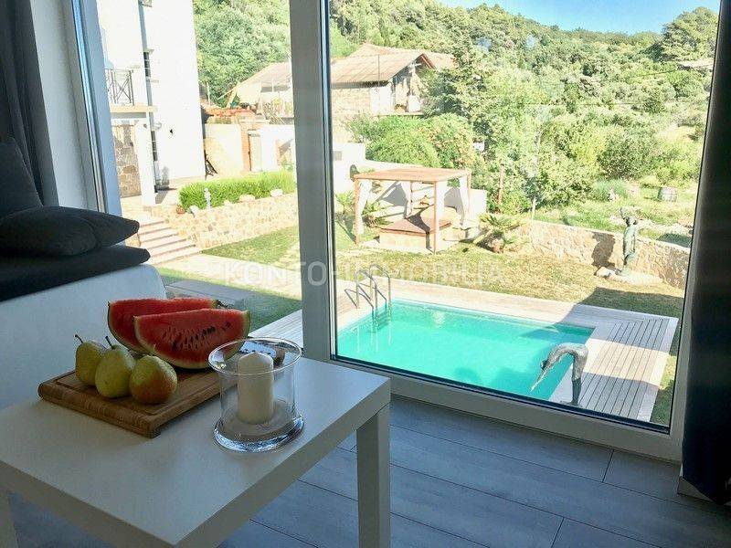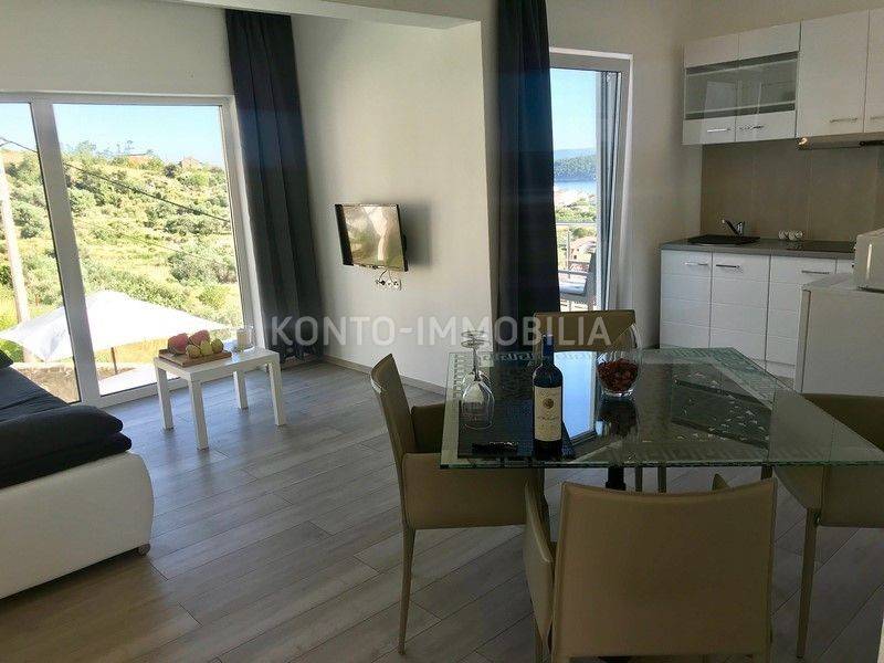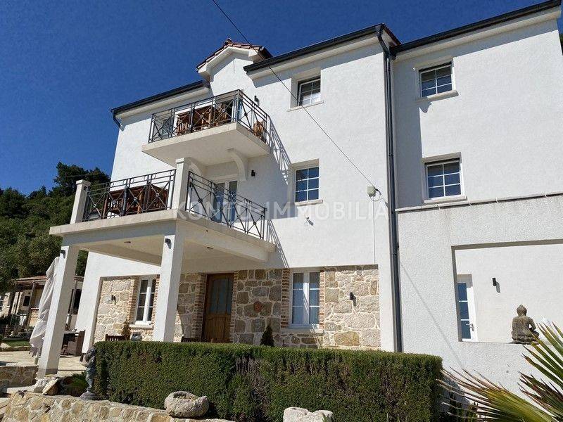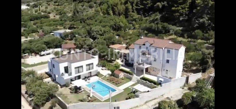 Due bellissime ville, situate in una posizione che garantisce completa privacy e intimità, entrambe con vista panoramica e aperta sul mare e sulle isole circostanti. Una villa è decorata in stile mediterraneo, 321 m2. Gli spazi della villa mediterranea sono suddivisi in modo tale da avere una parte privata composta da un piano terra dove la cucina è realizzata su misura Dan Küchen, ampia e calda sala da pranzo e soggiorno, camera da letto, bagno, wc, ripostiglio e scala ai piani primo piano dove si trovano altre due camere da letto ed un bagno. Nella seconda parte della casa, con ingressi separati, ci sono altri due appartamenti, un bilocale al primo piano, arredato in stile inglese e un trilocale al secondo piano, arredato in stile mediterraneo, con belle terrazze e panorami ancora più belli. Tutti gli appartamenti sono superbamente attrezzati e offrono un perfetto comfort domestico. Le facciate della villa mediterranea sono linee semplici, costruite con una combinazione di materiali moderni, pietra e dettagli in legno. Accanto alla villa c'è un bar all'aperto e una cucina all'aperto, con uno spazio per socializzare, che può essere utilizzata nei mesi invernali poiché può essere chiusa. L'esterno della villa è pavimentato con lastre di pietra. Nel giardino si trova una casa più piccola di circa 15 mq con terrazzo e bagno, che può essere allestita come sauna. Accanto al giardino c'è una casetta da giardino di 15 m2. La villa mediterranea è stata costruita prima del 1968 e completamente rinnovata e ampliata nel 2020, in uno stile tradizionale, che si fonde perfettamente con l'ambiente circostante e conferisce un caldo "aspetto mediterraneo". La seconda villa è di nuova costruzione, linee e design moderni, 207 m2. Si compone di un piano terra dove si trova un comodo appartamento con due camere da letto, garage di 22,24 mq, ripostiglio - ripostiglio e bagno. Al piano superiore ci sono due appartamenti con una camera da letto e moderni, ciascuno con terrazza. Questo bellissimo complesso completa la piscina di 44,25 m2, con tutti i servizi a bordo piscina. Su un ampio e curatissimo giardino si trova un ampio parcheggio di circa 500 mq, con una casetta per attrezzi realizzata in mattoni antichi. Durante la costruzione di entrambe le ville, sono stati utilizzati tutti i materiali di qualità e particolare attenzione è stata prestata ai dettagli, al fine di creare un'armonia armoniosa tra moderno e tradizionale.