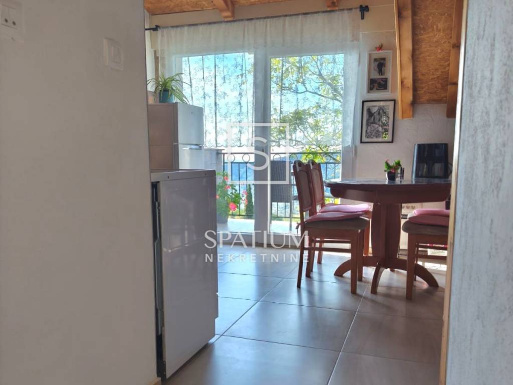COMUNE DI VINODOLSKA, GRIŽANE, offriamo un appartamento situato in una casa a schiera in una zona tranquilla del villaggio di Grižane. Si trova in mansarda, di 40 m², ed è composto da ingresso, camera da letto, bagno e WC, cucina con sala da pranzo e soggiorno con accesso a un balcone con una splendida vista sul mare e sulla natura. Dispone di una terrazza con cortile con un grande barbecue e uno spazio per socializzare, di 42 m². L'adeguamento nel 2022 include nuovi impianti elettrici e idrici, carpenteria e tetto. Possibilità di riscaldamento a legna, completamente arredato e attrezzato. La proprietà è ideale per una vacanza perché si trova in una posizione tranquilla circondata dalle bellezze naturali della valle del Vinodol.