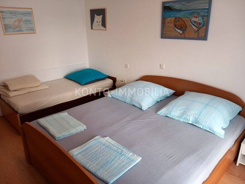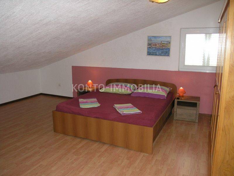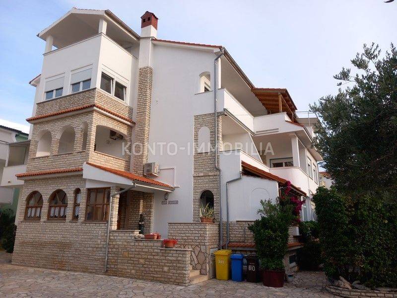 Due case familiari con un totale di 9 appartamenti e un bellissimo giardino paesaggistico. La prima abitazione è composta da un piano interrato dove si trova un ripostiglio, un'officina, un locale caldaia, una stanza, un bagno, un piano terra dove si trova un comodo trilocale con ampia terrazza coperta, il primo piano dove c'è sono 2 bilocali e un monolocale, entrambi con ampi terrazzi, 2 1° piano con un grande bilocale e la mansarda dove si trova anche uno spazioso monolocale. Tutti gli appartamenti sono completamente arredati e dotati di tutti gli elettrodomestici. Ogni appartamento ha una vista sul mare e sul centro storico. Nella seconda casa al piano terra ci sono due garage e un locale caldaia per il riscaldamento. Al 1° e 2° piano è presente un bilocale ciascuno, anch'essi completamente arredati. Entrambe le case hanno riscaldamento centralizzato a gasolio, riscaldamento solare per l'acqua calda, camini, riscaldamento a pavimento al 2° piano in una grande casa. Tutte le finestre sono in PVC con persiane. Il giardino è ben arredato con un grande barbecue all'aperto e una casetta da giardino dove si trova una cucina estiva. C'è anche un numero sufficiente di posti auto nel giardino. Entrambe le case sono estremamente ben tenute e i proprietari si occupano da molti anni di affitti turistici. La posizione è estremamente attraente perché le case si trovano ad una distanza di soli 200 m dalla spiaggia sabbiosa ea 15 minuti a piedi dal centro.