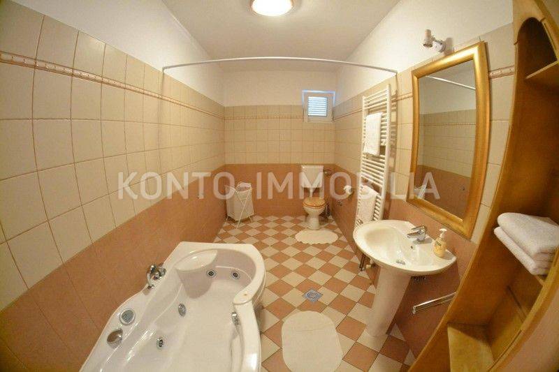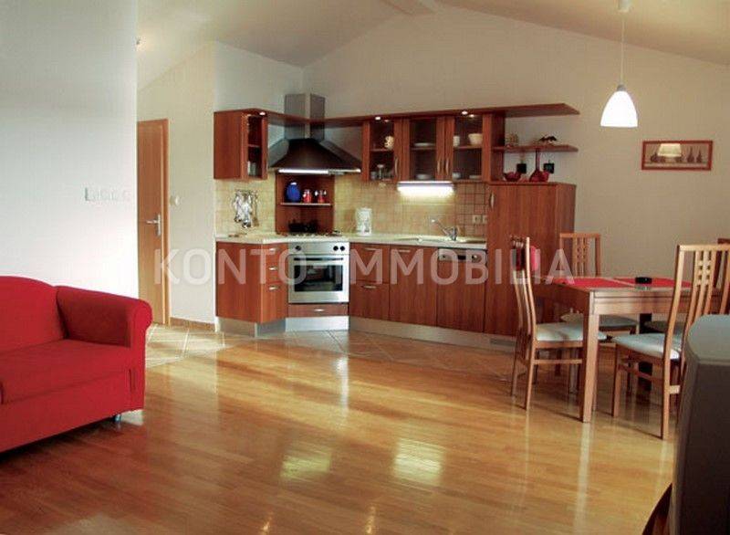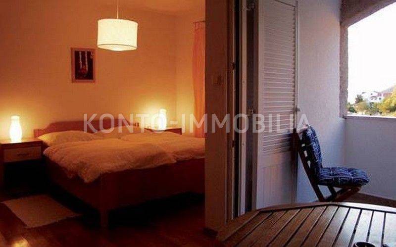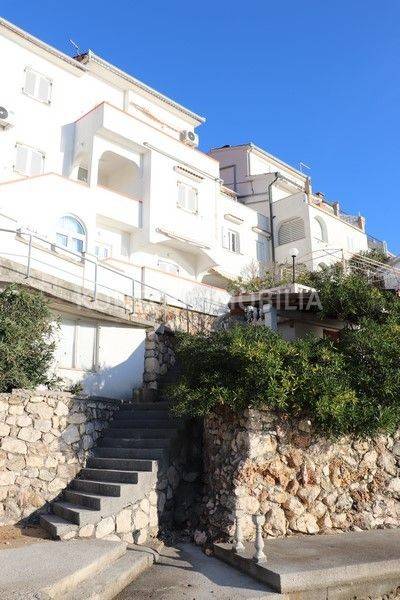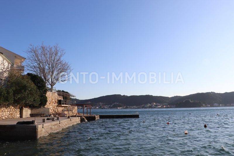 Casa a schiera, situata a soli 10 metri dal mare, con splendida vista sul mare e sulle isole circostanti. La casa è stata completamente ristrutturata circa 20 anni fa. Si compone di due unità abitative, un appartamento su due piani con due camere al piano terra e al primo piano, e un appartamento con due camere al secondo piano. Gli appartamenti sono completamente arredati e dotati di tutti gli elettrodomestici. Condizionatori d'aria negli appartamenti, riscaldamento centralizzato a gasolio, infissi esterni in PVC, facciata termica 5 cm, isolamento del tetto 15 cm. Al piano terra della casa si trovano anche tre garage, per una superficie complessiva di 42,52 mq. Un luogo estremamente raro e attraente.