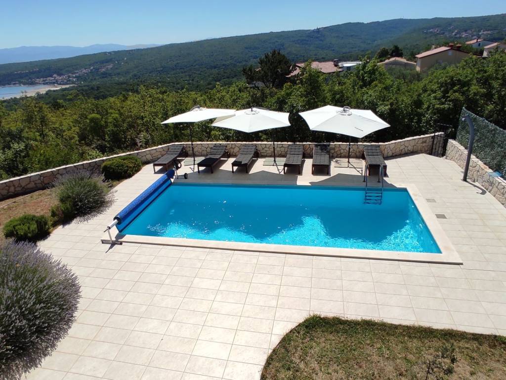 ISOLA DI KRK - Villa di lusso con vista panoramica sul mare In una posizione tranquilla sull'ISOLA DI KRK, a circa 1600 metri dalla costa, si trova questa imponente villa di lusso di circa 250 m2, distribuita su tre piani, perfettamente integrata nell'ambiente naturale mediterraneo. Nel seminterrato si trova un'ampia sala per socializzare e giocare, che può essere convertita in un'area benessere, fitness o intrattenimento, offrendo ai futuri proprietari ulteriore valore aggiunto e flessibilità d'uso. Il piano terra comprende un elegante soggiorno con accesso a un giardino splendidamente curato, una cucina con sala da pranzo, un bagno e una camera da letto con bagno privato. Un fascino particolare è dato dall'accesso all'area esterna con una ricca vegetazione mediterranea, una terrazza coperta con barbecue, un pratico ripostiglio con lavanderia e una piscina di 30 m2 con area prendisole, da cui si apre una splendida vista sul mare. Al primo piano si trovano due ampie camere da letto, ciascuna con il proprio bagno e accesso a un ampio balcone che offre una spettacolare vista panoramica sul mare, che garantisce una sensazione di completo relax ogni giorno. La villa è dotata di pannelli solari per il riscaldamento dell'acqua, che contribuiscono all'efficienza energetica e alla riduzione dei costi di manutenzione. Questa proprietà sull'isola di Veglia rappresenta la combinazione perfetta di lusso, comfort e posizione privilegiata, ideale per una vita familiare tranquilla o come investimento per affitti turistici. Contattateci per ulteriori informazioni e fissate una visita a questa splendida villa che offre tutto ciò che avete sempre cercato!