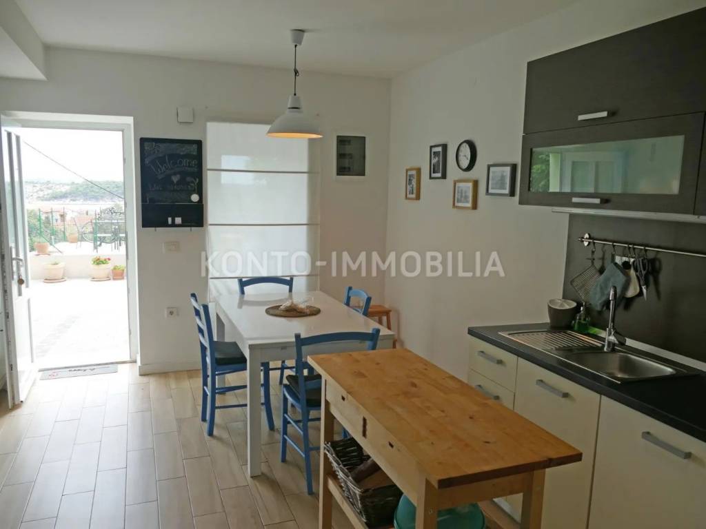 Bellissima e moderna casa a schiera in pietra ristrutturata, con una splendida vista sul mare, da cui dista solo 500 m. La superficie abitabile di 100 m² si sviluppa su due piani. Al piano terra si trovano la cucina con sala da pranzo, soggiorno, bagno e ripostiglio, mentre al primo piano si trovano tre camere da letto e un bagno, oltre all'accesso alla soffitta. La casa è completamente arredata e dotata di tutti gli elettrodomestici. Il riscaldamento è a pellet, tranne nella camera da letto esposta a nord al primo piano, che è dotata di riscaldamento elettrico a pavimento. Dietro la casa si trova un cortile con una terrazza in costruzione e un ripostiglio esterno, e di fronte alla casa ci sono due posti auto. Quasi ogni stanza della casa offre una vista sul mare. Tranquilla e ideale per una vacanza. A 6 km dal centro città, a 1 km dal negozio più vicino. Gli amanti delle passeggiate a piedi e in bicicletta possono anche raggiungere il centro storico attraverso la passeggiata lungo il mare. Inoltre, a soli 100 m dalla casa ci sono sentieri che conducono attraverso un paesaggio molto pittoresco. Una rarità sul mercato!