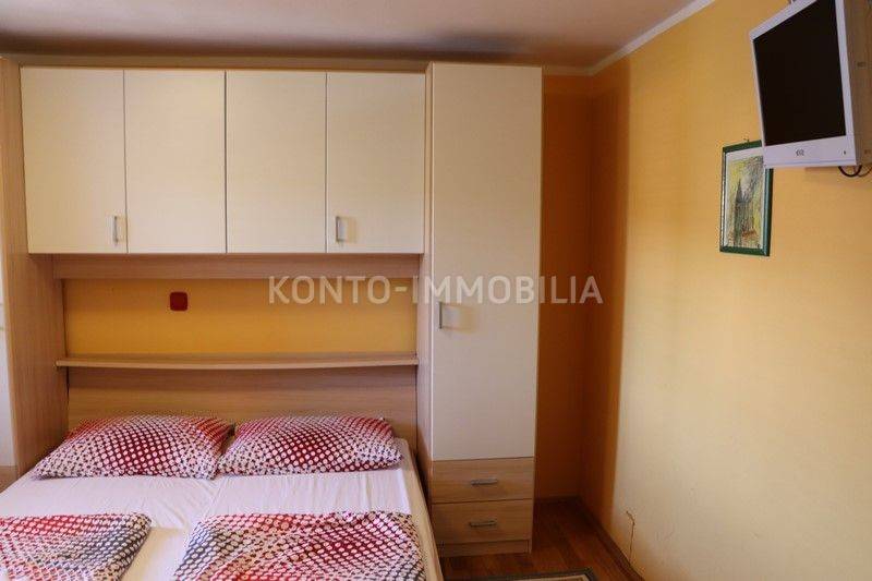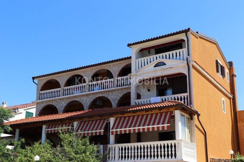 In vendita un piano della casa a Barbat, al 2° piano, a 50 m dal mare, con tre appartamenti. Gli appartamenti hanno una superficie di 55,88 m², 59,08 m² e 29,95 m², due bilocali e un bilocale. Ogni appartamento gode di una splendida vista mare. Gli appartamenti sono completamente arredati, dotati di aria condizionata in ogni stanza, finestre in alluminio con persiane, riscaldamento centralizzato a gasolio negli appartamenti, il tetto della casa è stato sostituito circa 4 anni fa. Gli appartamenti hanno ingressi esterni separati. Un posto auto per appartamento nel cortile. L'edificio è suddiviso in condomini.