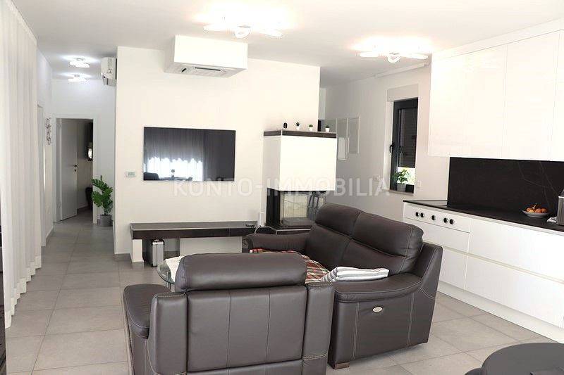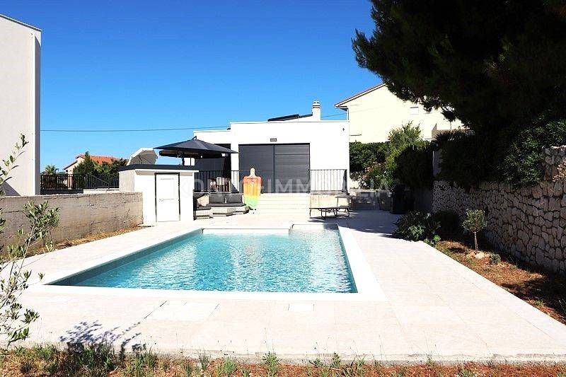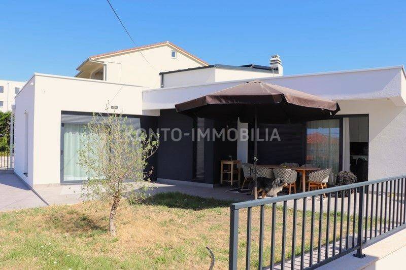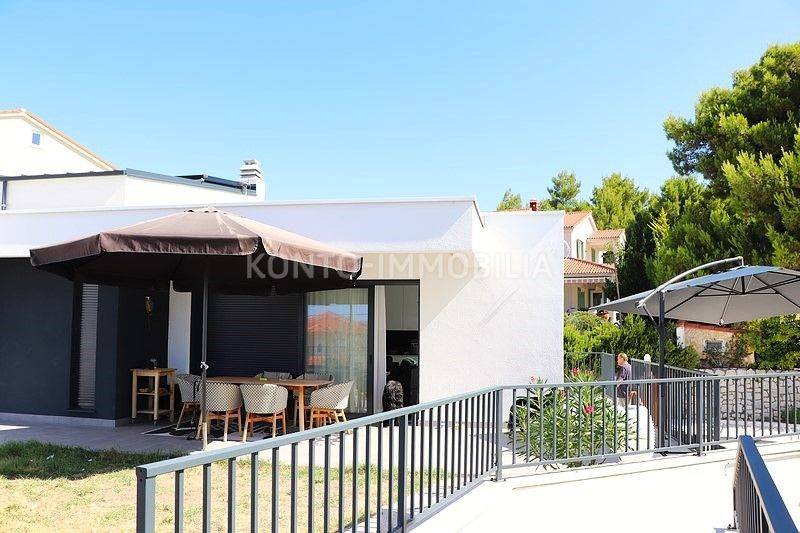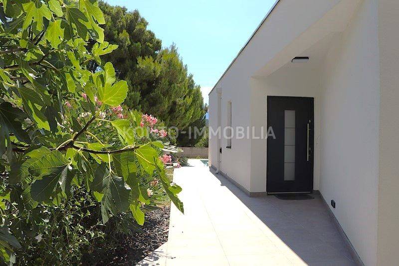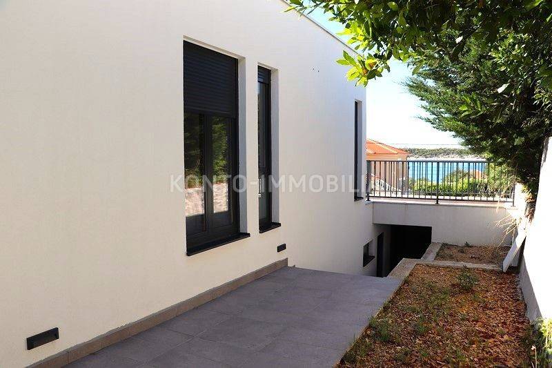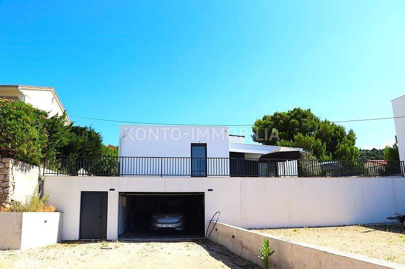 Offerta esclusiva: una moderna villa con piscina è in vendita a soli 70 m dal mare. Questa sofisticata proprietà ha una superficie totale di 152,30 m², di cui 85,50 m² di superficie abitabile e 66,80 m² di seminterrato, dove si trovano il garage, il ripostiglio e la sala macchine. La villa sorge su un terreno di 781 m², attentamente progettato per offrire il massimo comfort, privacy ed estetica, con particolare attenzione all'ariosità e alla luce naturale.
