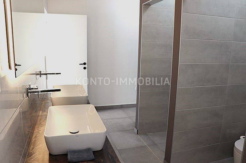 Entrando, sarete accolti da un elegante ingresso, mentre la parte centrale del piano terra si apre su un ampio soggiorno, una cucina modernamente attrezzata e una sala da pranzo con accesso a una terrazza di 45,20 m². Nella seconda parte del piano terra si trovano un bagno per gli ospiti e due camere da letto, ciascuna con bagno. Lo spazio è molto elegante e perfettamente progettato per socializzare e godersi i momenti quotidiani.
