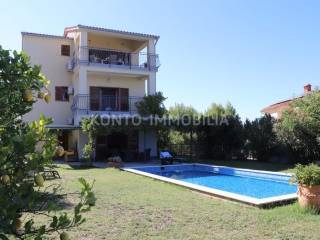 Al piano terra si trovano un ingresso, un ripostiglio, un bagno di servizio, una cucina, un locale caldaia, un locale tecnico per la piscina, un corridoio, un bagno, una camera da letto e una splendida scala a vista che conduce al primo piano, composto da un corridoio, un ripostiglio, una lavanderia, 2 camere da letto, 2 bagni e una terrazza coperta.