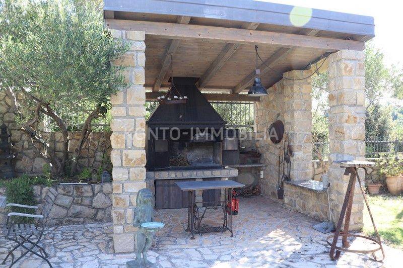 Anche gli spazi esterni sono altrettanto suggestivi: questa eccezionale proprietà è impreziosita da un giardino molto suggestivo e ben curato, che ospita una varietà di piante mediterranee, diversi alberi da frutto, un ampio prato, una piscina di 42 m² con zona solarium, un'area lounge esterna coperta con camino esterno - postazione barbecue e posti auto riservati.