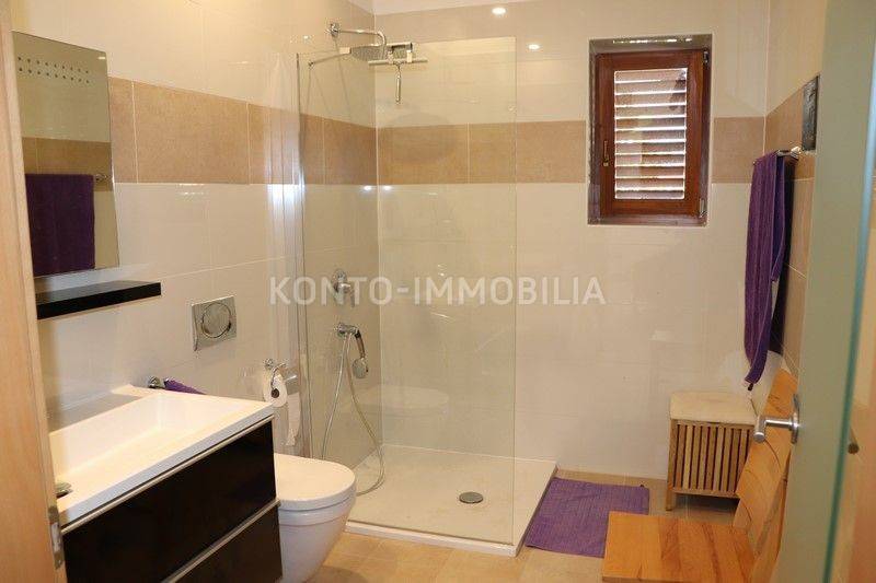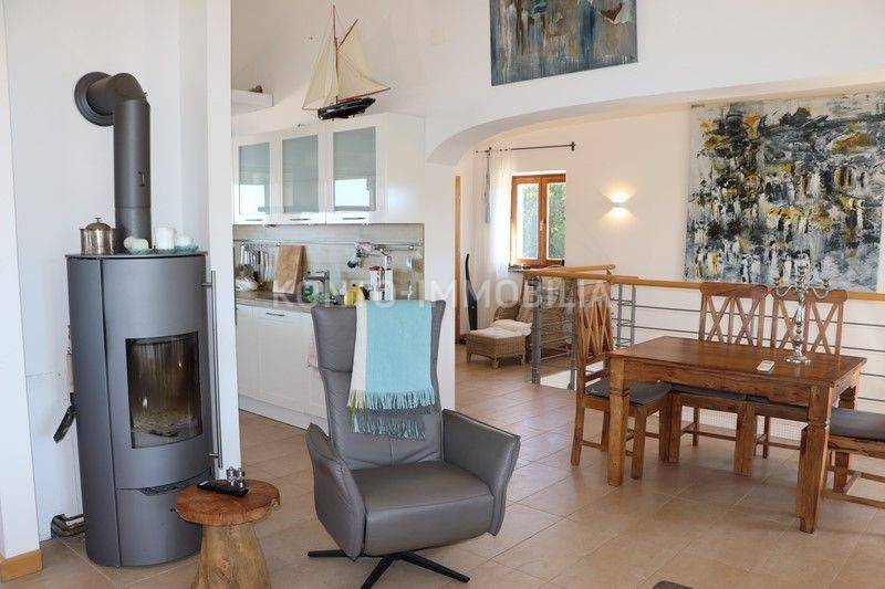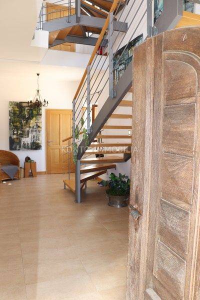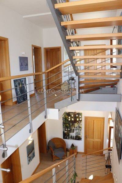 L'immobile viene venduto completamente arredato. Riscaldamento a pavimento in tutta la casa, canna fumaria e due camini, sistema di protezione contro i fulmini, 2 locali di servizio con serbatoio di acqua calda, riscaldamento a tubi (6 kW commutabili), sistema di gestione dei collettori solari, impianto satellitare a 5 vie, addolcitore d'acqua Grünbeck, ripostiglio al piano terra e al primo e secondo piano con "messa a terra" per l'installazione di un ascensore (progettato opzionalmente come vano ascensore), scala in acciaio per il primo e il secondo piano con gradini in legno massello, illuminazione a LED a parete lungo la scala, scatola di derivazione per il sistema di allarme, condizionatori in quasi tutte le stanze, sistema di ventilazione per l'intera casa, aperture in legno con persiane, facciata termica, L'altezza di tutte le stanze della casa è di 3 m.
