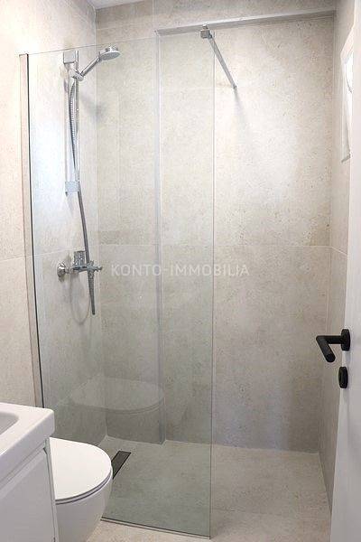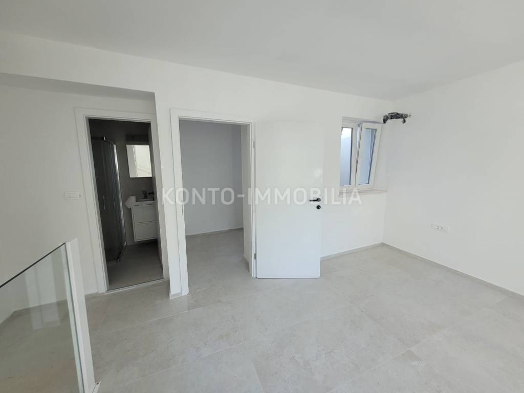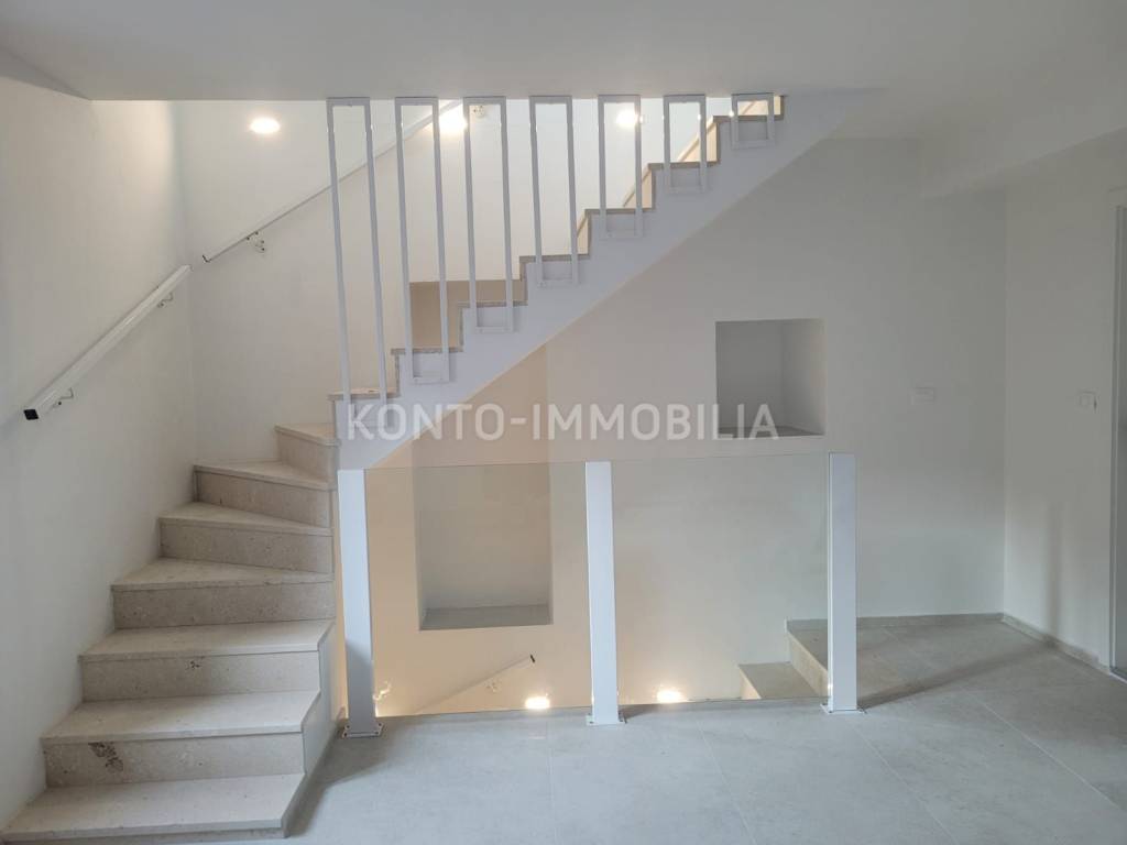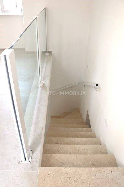 La scala ha lussuosi gradini in pietra e la ringhiera è in vetro e moderno metallo bianco. I pavimenti sono rivestiti con ceramiche italiane di alta qualità, le finestre hanno davanzali in pietra e la cucina è dotata di un lucernario elettrico con telecomando.