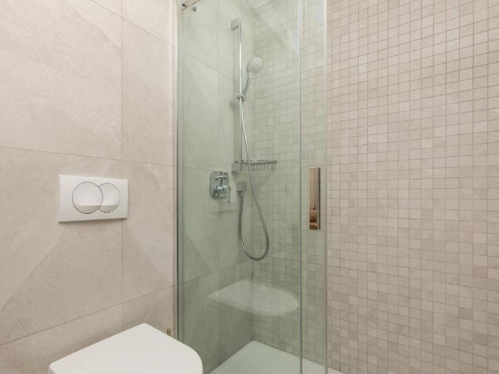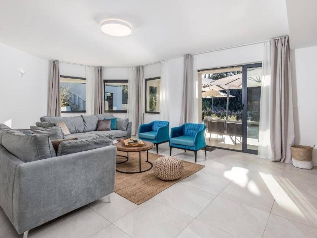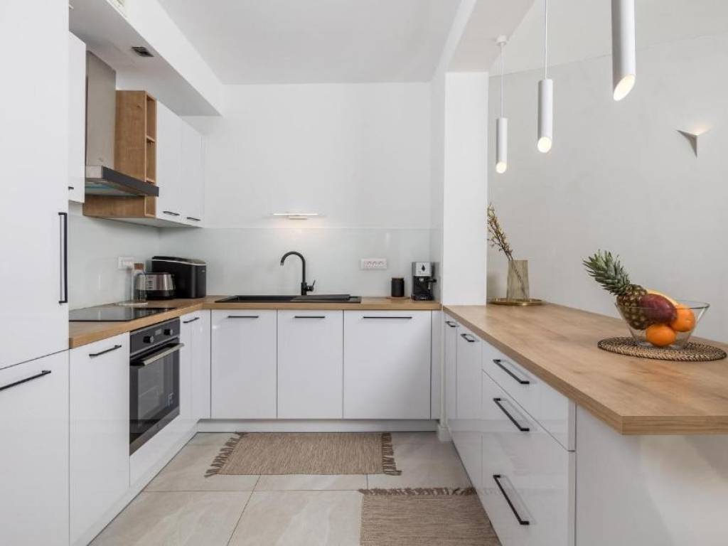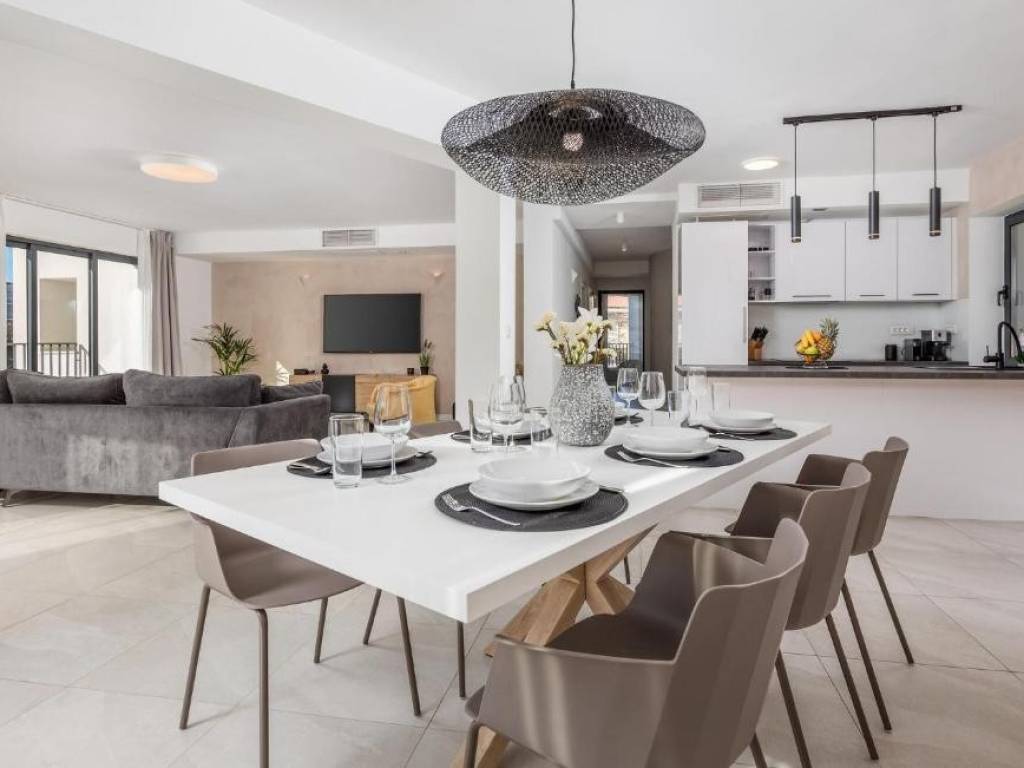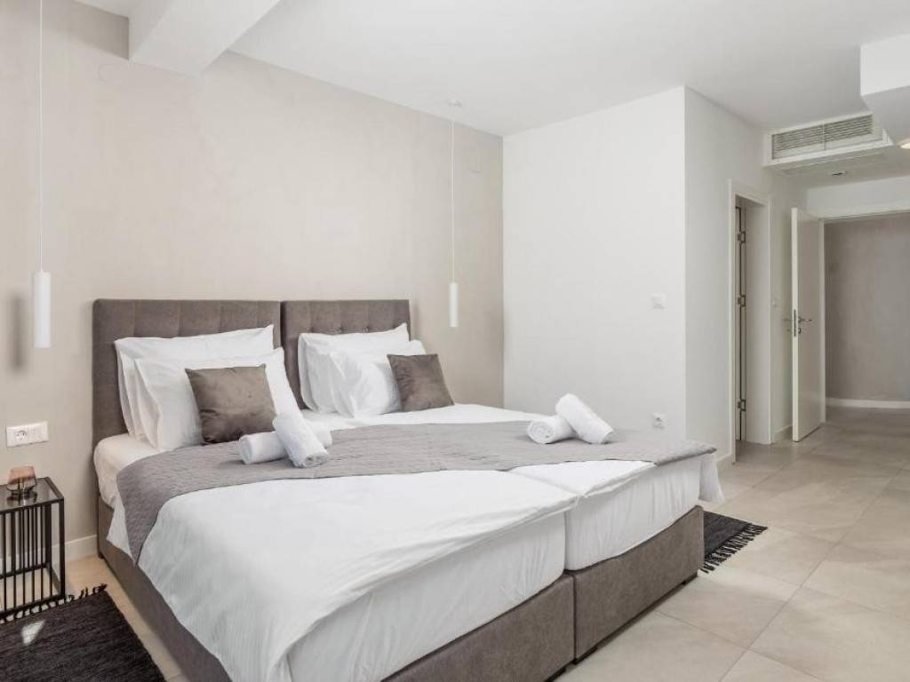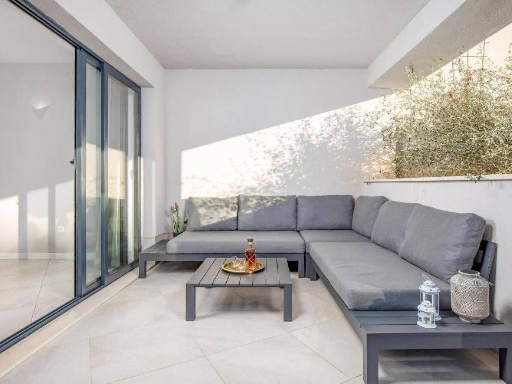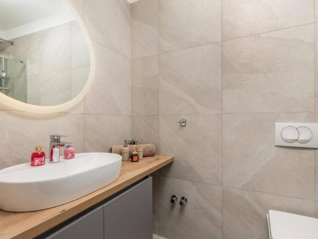 Il piano terra è concepito come un'unità di lusso separata con un altro trilocale, tre bagni dal design moderno, un WC aggiuntivo e un elegante soggiorno, cucina completamente attrezzata e sala da pranzo che continuano sulla terrazza esterna. Ogni stanza della villa è dotata di materiali di alta qualità e della tecnologia più recente, compreso il riscaldamento elettrico a pavimento che garantisce un'atmosfera piacevole durante tutto l'anno.