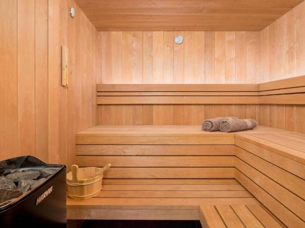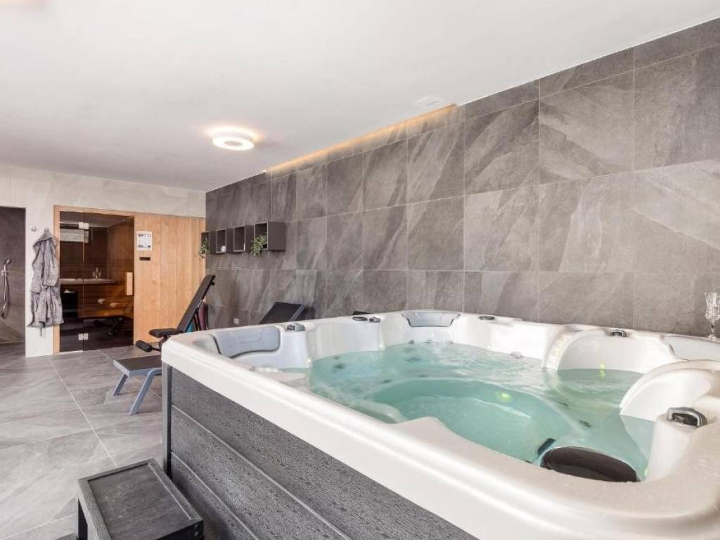 Un centro benessere separato situato in una struttura ausiliaria offre un'atmosfera speciale di lusso. Con una superficie di 50 m², l'area benessere comprende sauna, jacuzzi, doccia moderna, WC e mini palestra.