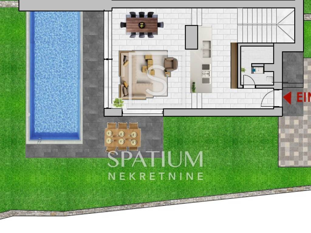 FUNTANA, ISTRIA, proponiamo in una bella posizione non lontano dal mare una villa con piscina e giardino. Si compone di seminterrato, piano terra e primo piano per un totale di 146,23 m2. Nel seminterrato c'è una sauna, una sala ricreativa e un WC. Il piano terra è composto da un locale tecnico, wc, cucina e sala da pranzo, e un soggiorno con accesso ad un ampio terrazzo e ad una piscina all'aperto. Al primo piano ci sono tre camere da letto con annessi bagni, due delle quali hanno accesso ai propri terrazzi. Sul terreno di 253,84 m2 si trova un giardino, una terrazza, una piscina di 21,67 m2 e un parcheggio di 48,14 m2 per due auto. Il riscaldamento e il raffreddamento sono effettuati da una pompa di calore "Daikin". Riscaldamento a pavimento in tutto l'edificio. Le attrezzature e i materiali utilizzati nella costruzione sono di alto livello, dove l'attenzione è rivolta alla qualità. La casa si trova in un'ottima posizione, a soli 600 metri dal mare, vicina a tutti i servizi essenziali. L'esistenza di un'area territoriale unica nella zona dell'odierna Funtana è sicuramente documentata fin dal periodo romano. Tra i numerosi reperti dell'antichità spiccano i resti della centuriazione, cioè della divisione del territorio, di cui ci rendiamo conto se guardiamo l'abbondanza di foto aeree che mostrano la bellezza della costa di Funtanjan e dell'entroterra. l'intervento più imponente nell'ambiente. Non solo Kampaladanja, infatti, ma anche altri campi circostanti la linea costiera portano ancora, attraverso la loro divisione quadrata regolare, tracce del sistema ortogonale che segna l'intervento fondamentale romano nel paesaggio. D'altro canto Funtana-Fontana è stata dichiarata la località più turistica dell'Adriatico e si trova lungo la strada Parenzo - Orsera - Orsera, lungo la quale sono state costruite numerose case familiari e non ce n'è quasi nessuna che non riceva ospiti in la stagione estiva. Il destino esclusivamente turistico di questa piccola località costiera è rivelato dai numerosi esercizi di ristorazione, che conferiscono a questo luogo ulteriore fascino e unicità durante i mesi estivi. Lungo la costa si trovano anche campeggi ben arredati e integrati nell'ambiente, oltre ad alcuni alberghi. Per tutte le altre informazioni contattateci con fiducia. Robert Žauhar Assistente alla mediazione +385 92 177 5404 robert@spatium.hr Spatium nekretnine + 385 51 272 903 info@spatium.hr