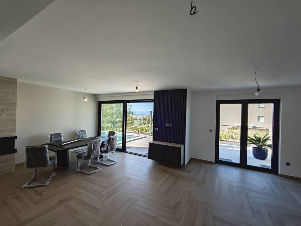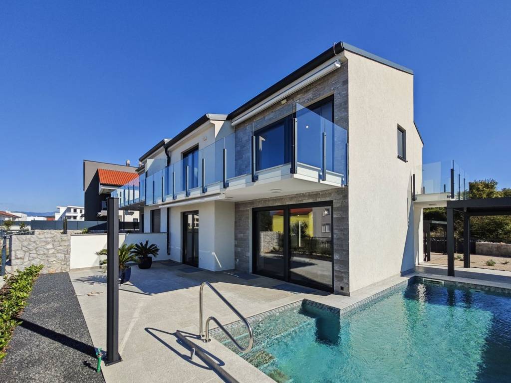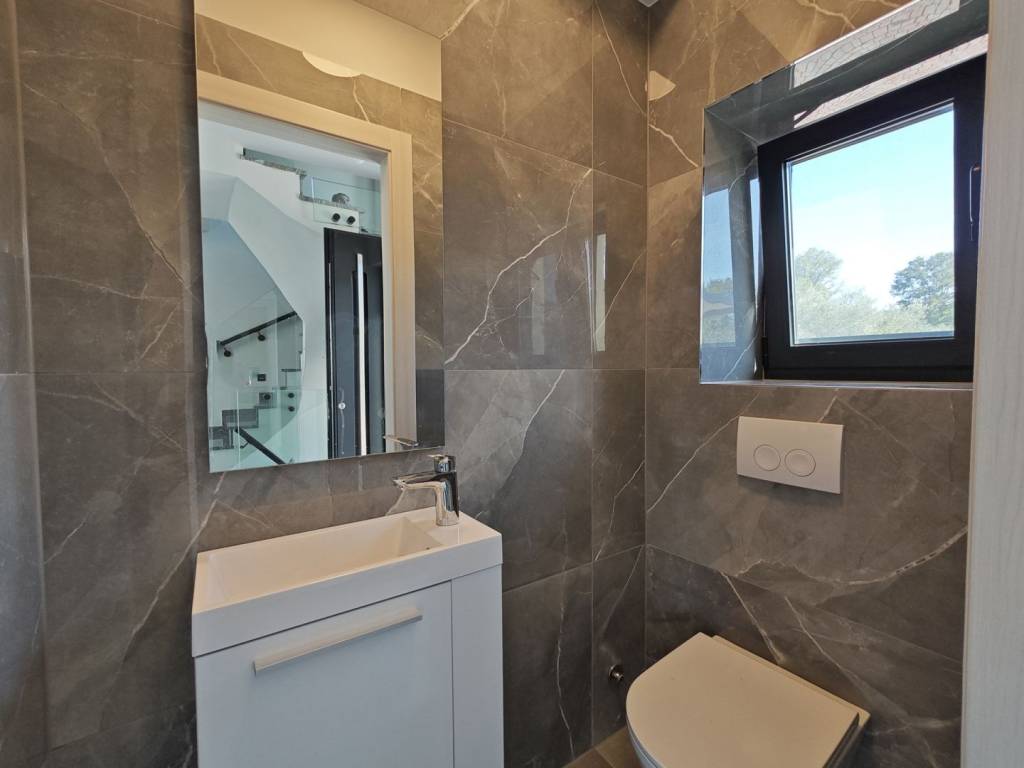 In una posizione tranquilla a Malinska, a pochi minuti a piedi dal mare e da tutti i servizi, si trova questa elegante villa bifamiliare che combina un'architettura di alto livello, arredi di lusso e un esterno impeccabilmente decorato con vista panoramica sul mare e sulla costa. La superficie interna totale è di 184 m², distribuita su tre piani, progettati per soddisfare le esigenze di uno stile di vita moderno, con privacy e comfort assoluti. Al piano seminterrato si trova una zona multifunzionale con taverna, zona relax e una cucina aggiuntiva, mentre lavanderia, ripostiglio e zona tecnica sono discretamente integrati nel design degli interni. Il piano terra è dominato da una zona giorno aperta che collega il raffinato soggiorno con una cucina di design e una sala da pranzo. Due ampie terrazze al piano terra, con una superficie totale di 40 m², estendono lo spazio abitativo verso l'esterno, permettendo di godere della vista e dei profumi del Mediterraneo in qualsiasi momento della giornata. Un'ulteriore terrazza di 21,6 m², situata sotto una pergola bioclimatica con accesso dalla cucina, crea l'atmosfera perfetta per cenare all'aperto. Al piano superiore si trovano tre camere da letto lussuosamente arredate, ciascuna con bagno privato e accesso a un balcone, per una superficie totale di 18 m². Ogni vista dal piano è mozzafiato, creando una combinazione ideale di intimità e prestigio. La villa è dotata dei più moderni impianti: riscaldamento a pavimento, pompa di calore, aria condizionata e serramenti in alluminio con tapparelle garantiscono la massima efficienza energetica e comfort durante tutto l'anno. Una pergola bioclimatica enfatizza ulteriormente la raffinatezza degli spazi esterni. Il giardino paesaggistico di 312 m² offre una sensazione di completa privacy. La piscina con una superficie d'acqua di 27 m² è dotata di un sistema di elettrolisi dell'acqua, cloratore, pompa per il nuoto controcorrente e getti idromassaggio, perfetta per il relax e lo svago. Un solarium a bordo piscina e due posti auto coperti (25 m²) completano la funzionalità e l'estetica degli spazi esterni. La posizione è perfettamente equilibrata, abbastanza vicina al mare, ma abbastanza appartata da poter godere appieno del silenzio e del panorama. Questa villa rappresenta la perfetta combinazione di lusso moderno, ambiente naturale e vista mare senza tempo. Un'opportunità da non perdere, contattateci per un tour privato.