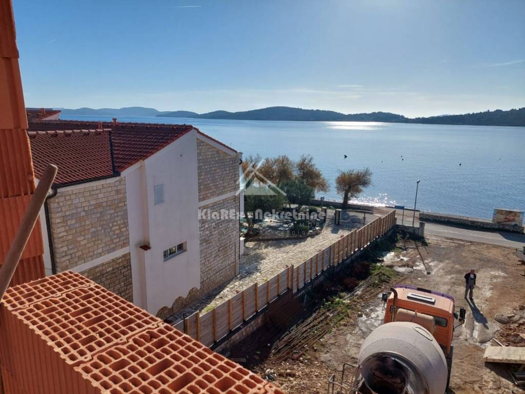 In an exclusive location, only 30 meters from the sea and a well-kept beach, modern and luxurious two-room apartments are for sale that will meet the highest standards of modern housing. A valid building permit has been issued for the building, and construction has already begun. Completion of the project and occupancy is expected by the end of 2026. The building is designed in such a way that there is one apartment on each floor, and each apartment will have a panoramic view of the sea and the islands of the Vodice archipelago. The construction will use high-quality materials and equipment that meet modern standards, top-quality ceramics, exterior carpentry (three-layer glass, electric roller shutters, mosquito nets), glass fences, underfloor heating, air conditioning in all rooms, and modern sanitary equipment. The project was carefully designed to combine sophisticated design and functionality, and the proximity of all relevant facilities as well as the tourist offer further enrich the quality of the project. The construction documentation is in order, and the dynamics of payment are in agreement with the investor. The offer includes: