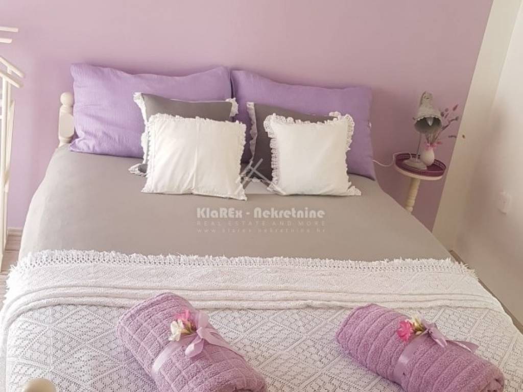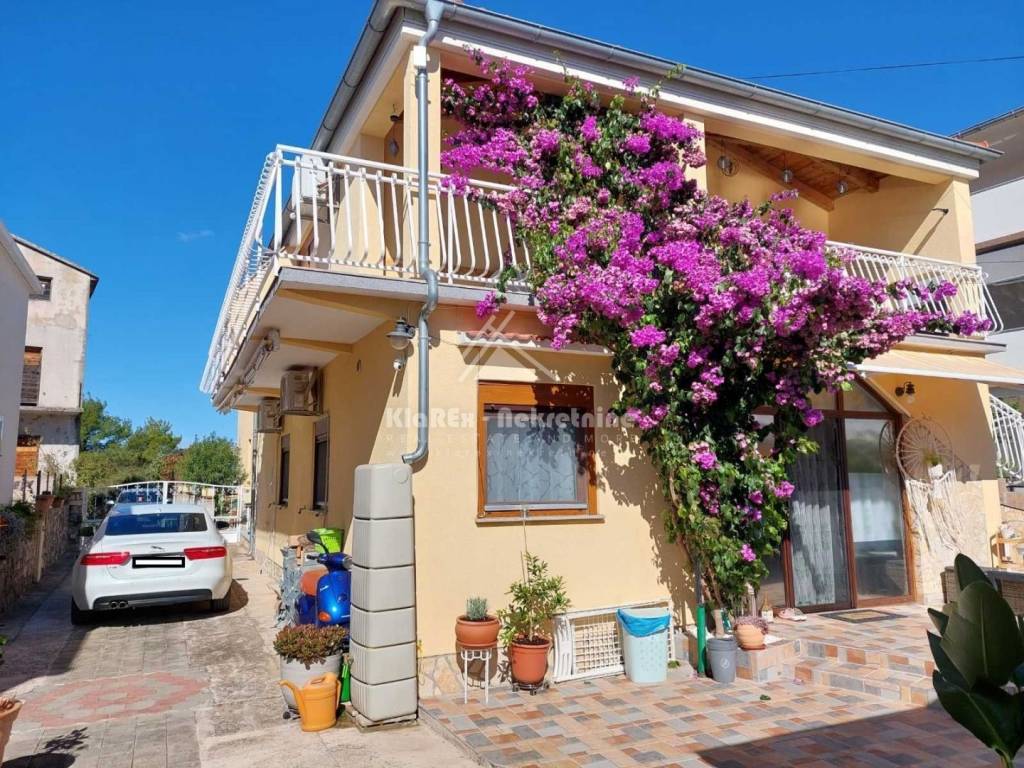 In Vodice, about 850 meters from the sea, or the city center, a detached house with a large yard and three apartments is for sale. The house was built in 2000 and has an area of 247.36 m/2 on two floors. The ground floor, which houses a tastefully decorated apartment consisting of: an entrance hall, a living room with an internal loggia, one bedroom, a kitchen and a storage room. External stairs lead to the first floor, where there are two categorized apartments for tourist or long-term rental. One apartment is larger with one separate bedroom, while the smaller apartment is a studio apartment with an adjoining dining room and a separate bathroom. The house has a garden of approximately 200 m/2, where a small storage room, a laundry room with an adjoining toilet and bathroom, and a beautifully decorated, covered summer kitchen with an adjoining barbecue stand out. Solar collectors are installed on the roof of the summer kitchen, which partially supply the home's electricity network. The house has parking for at least two cars, and it is worth noting that it is connected to the drainage system. The proximity of all relevant facilities such as shops, a well-maintained beach, a gas station, etc. gives this property additional value. The house is being sold furnished, except for valuable traditional furniture and personal belongings. Ownership is clear, documentation is in order. The highlighted price is not fixed and the seller is open to price negotiations.