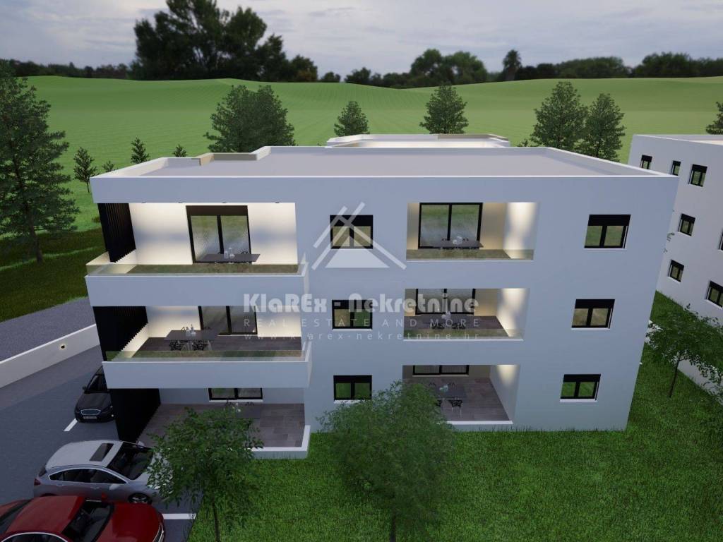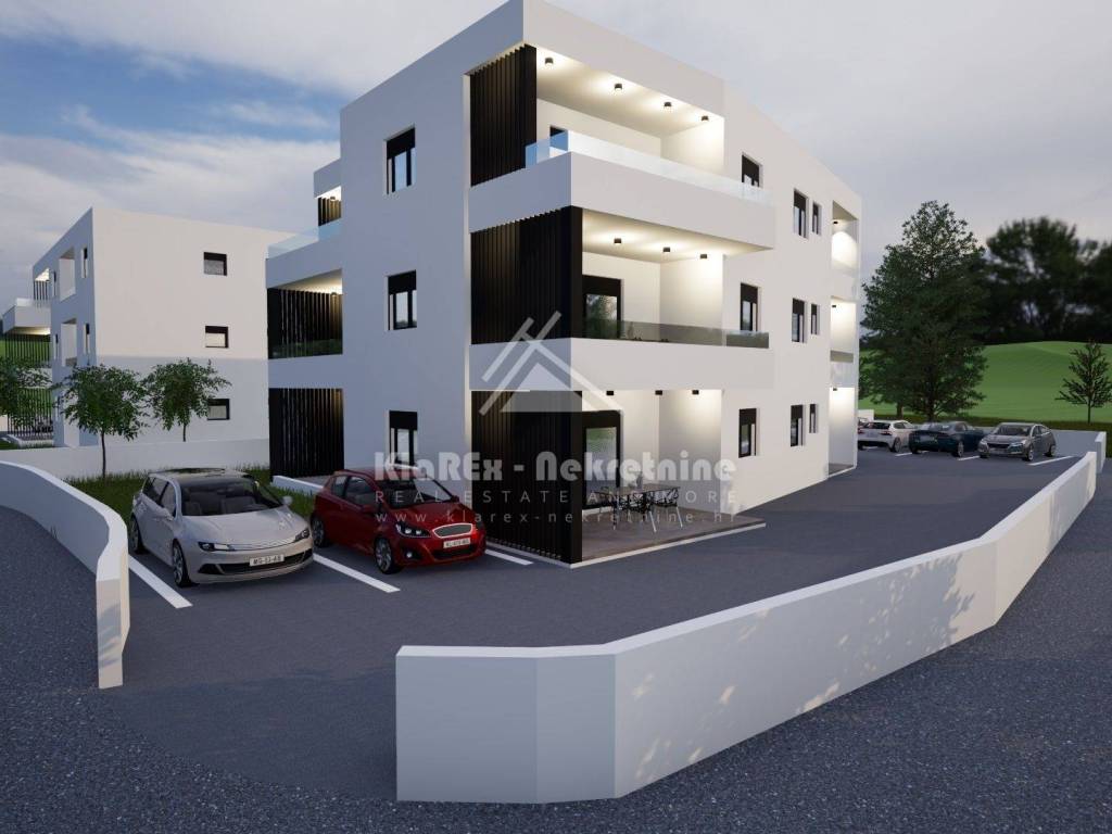 In Vodice, in an exceptionally good, quiet location about 700 meters from the sea, or the city center, two-bedroom apartments in a new building are being offered for sale. This is a residential building with a total of six residential units. The smallest apartment is a two-bedroom apartment with a net area of ​​68.85 m/2, while the largest apartment is on the ground floor with a net area of ​​71.57 m/2 with an associated garden of as much as 130 m/2. The building is being built according to modern construction standards, which include PVC and ALU joinery, flooring in a combination of high-class ceramics and laminate, air conditioning heating/cooling in all rooms, underfloor heating, etc. The apartments on the ground floor have their own courtyards, and all apartments have as many as three parking spaces. The building is in the initial phase of construction, while completion of the project and move-in are expected by spring 2026. Payment dynamics in agreement with the investor. The offer includes: