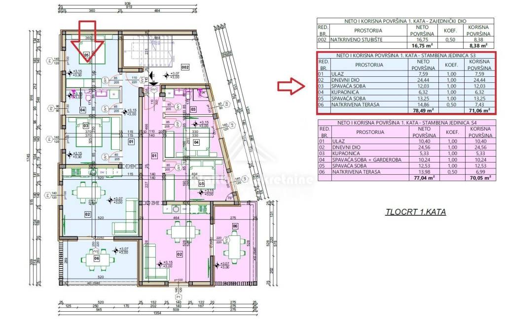 S3- apartment on the first floor of a residential building with a net area of ​​71.06 m/2. It consists of an entrance, living room, two bedrooms, bathroom and a covered terrace of 14.86 m2. The apartment has one parking space.