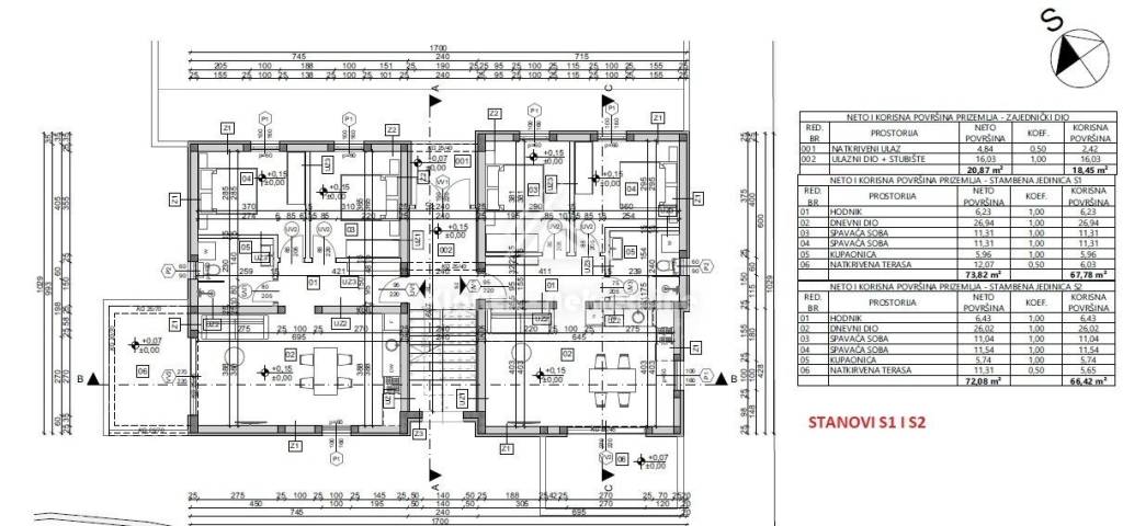 U Vodicama, na udaljenosti od 550 metara od mora, odnosno uređene plaže se stavlja u prodaju građevinsko zemljište površine 603 m/2. Za zemljište je izrađena projektna dokumentacija i uskoro se očekuje ishođenje građevinske dozvole. Projekt uključuje manju stambenu zgradu s ukupno četiri stambene jedinice površine od 67 m/2 do 75.89 m/2. Stanovima u prizemlju pripadaju i okućnice, a zgrada će posjedovati ukupno 6 parkirnih mjesta. Ova nekretnina predstavlja izvrsnu priliku za potencijalne investitore koji planiraju gradnju na dobroj poziciji u blizini mora i svih relevantnih sadržaja. Vlasništvo čisto, dodatne informacije na upit.