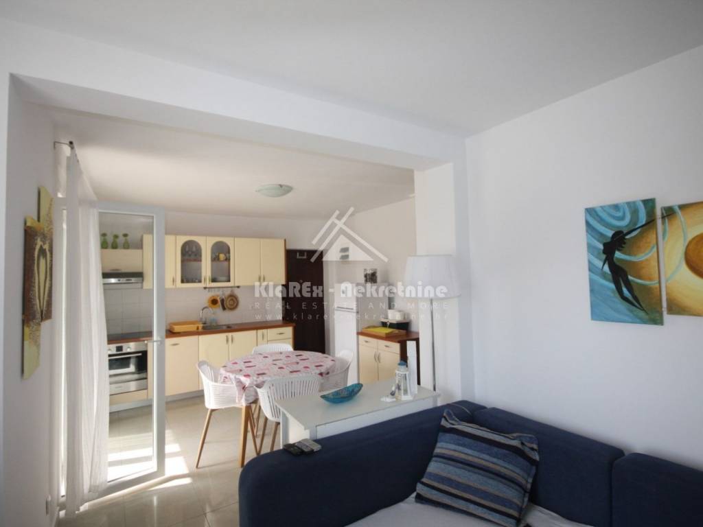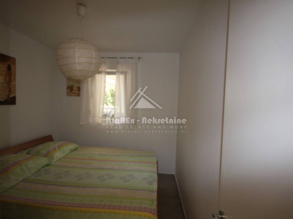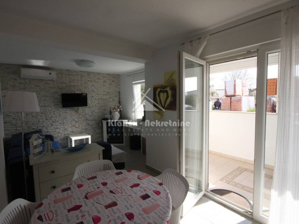 In Tribunj, a picturesque town on the Dalmatian coast near Vodice, a nice one-bedroom apartment on the ground floor of a small residential building with an area of 40.64 m/2 is for sale. The building was built in 2008 and is located about 450 meters from the sea, or the arranged beach in one of the most beautiful bays of Tribunj. In addition, the building is located in a dead-end street without much traffic. The apartment is being sold fully furnished, and consists of: one bedroom, bathroom, air-conditioned living room with an adjoining kitchen and dining room, and a garden or yard with an area of 30 m/2. The apartment also has a covered terrace or balcony with an area of 10 m/2 that can be closed in winter and can also be used as a storage room. The total net area of the apartment with all its belongings is 71 m/2. A special advantage is the covered outdoor loggia that serves as a summer gathering and barbecue place. The buyer also receives a free-standing barbecue along with the furniture. The apartment has one parking space. Clear ownership, proper documentation.