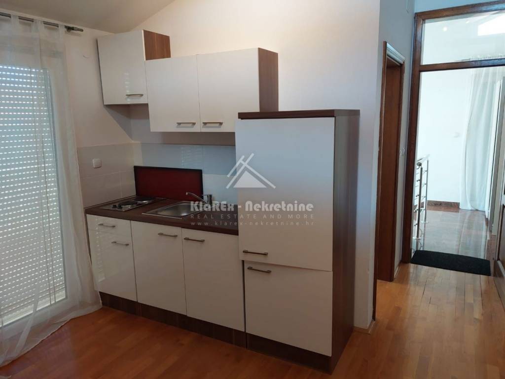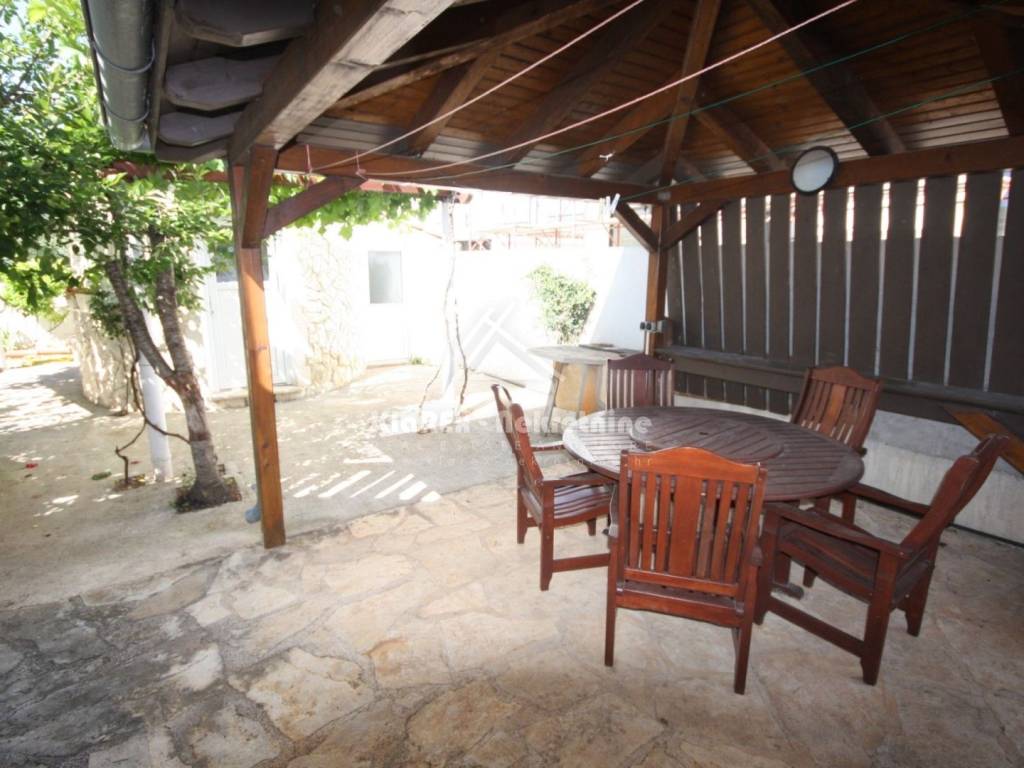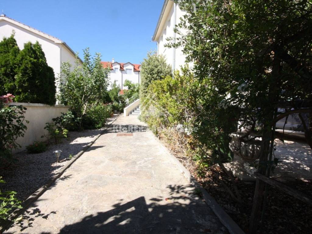 A detached house on a plot of land of 670 m/2 is for sale in Vodice. The house is located in an extremely quiet area, urbanistically arranged near larger shopping centers. Extremely high-quality, beautifully decorated and maintained property equipped with top-quality materials. It is built on three floors, of which the first floor is a basement of approx. 160 m/2 in which the central heating installation is located. The upper ground floor contains a comfortable one-room apartment consisting of a small hallway, a large living room with an attached kitchen and dining room, a bedroom and a bathroom. The ground floor also has a smaller closed loggia, glazed, which also serves as a country house. Internal stairs lead to the first floor, where there are two more fully furnished one-room apartments, and one of them also has a bedroom gallery. The terrace of the northwest-oriented apartment offers a view of the sea. The house has a total net area of approx. 370 m/2. The outside part is a tastefully decorated and maintained garden with Mediterranean plants, and within the garden there are also two storage rooms and a covered outdoor dining area. Secure parking for two cars. The house is about 1,500 meters from the sea, or from the city center. An excellent opportunity even for exploitation for tourist purposes. The property is clean, and the documentation is completely in order.