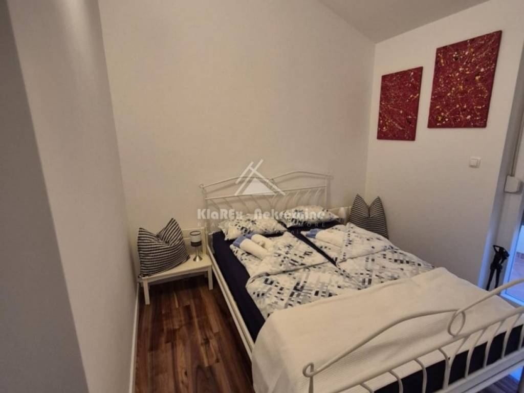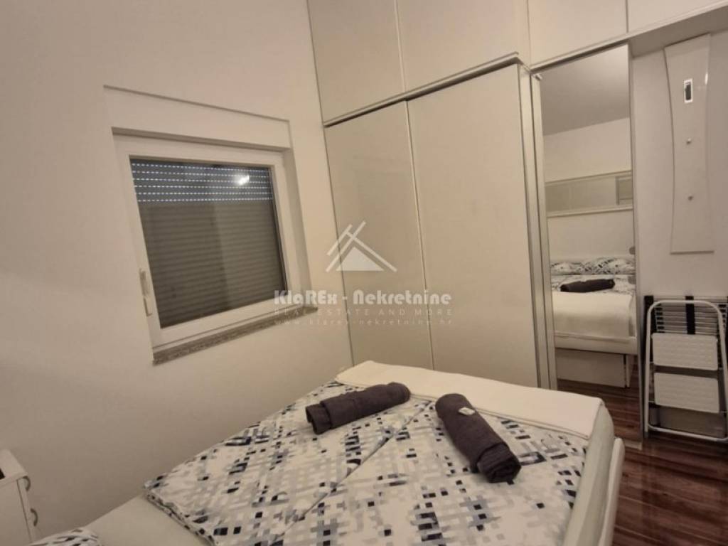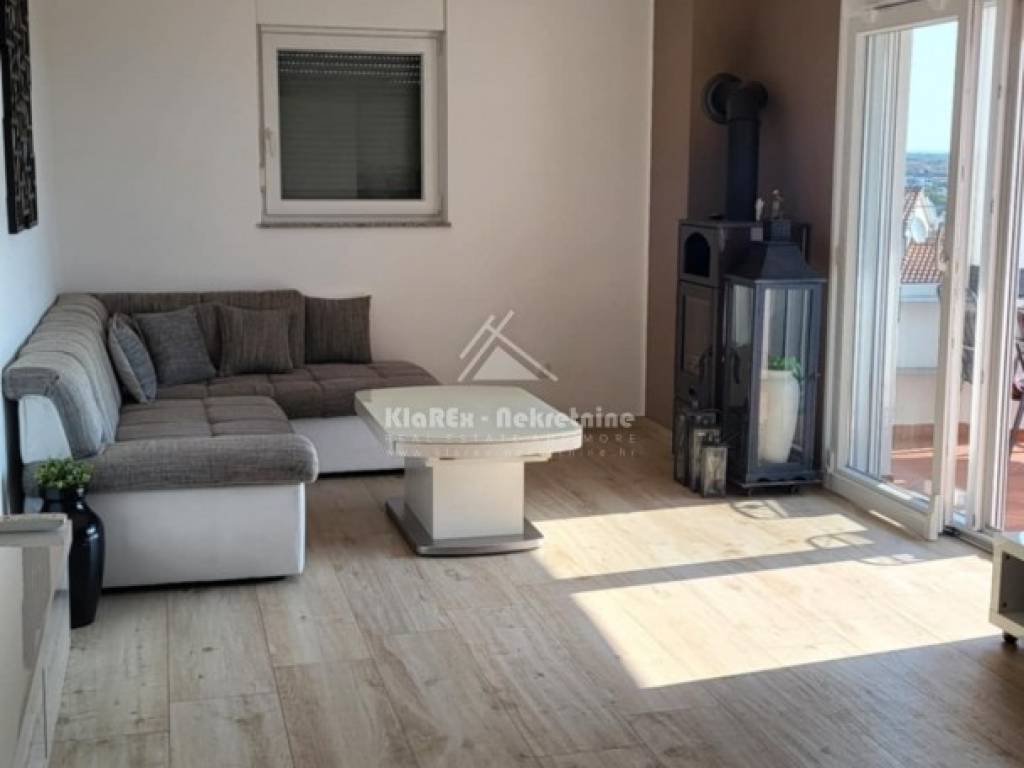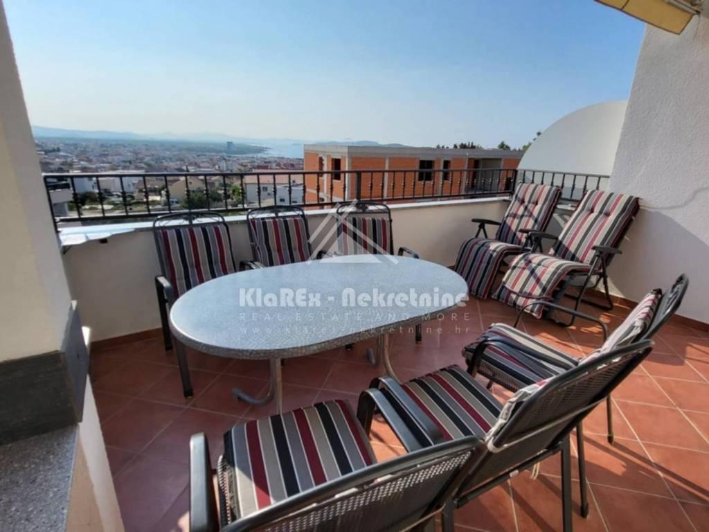A beautiful two-bedroom apartment with a net area of 73.71 m/2 is for sale in Vodice. The apartment is located on the second floor of a small residential building, and the terrace offers a beautiful view of the sea and the city itself. The building is about 1200 meters from the city center, and about the same distance from the first equipped beach. The apartment consists of a small hallway, a living room with an adjoining kitchen and dining room, two bedrooms and a bathroom. The living room opens onto a spacious terrace with a usable area of 10.88 m/2, and one of the bedrooms also has access to a small balcony with a northern orientation of 1.44 m/2. There is also a small storage room in the basement of the building with a surface area of 1.97 m/2, and another such prefabricated storage room is located in the courtyard of the building as part of the covered parking space. The apartment is being sold fully furnished with all equipment except for the seller's personal belongings. The apartment has separate water and electricity meters, a condominium parking space, and the advantage is the fact that it is connected to the public drainage system. Ownership is clear, documentation is completely in order.