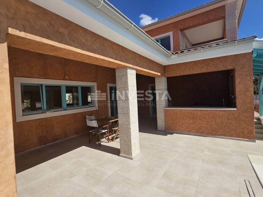 In vendita una bellissima villa di design mediterraneo, situata in una zona tranquilla di Barbariga, a soli 800 metri dal mare. Questa villa offre tutto il necessario per un soggiorno di lusso e relax. Progettata con particolare attenzione ai dettagli, utilizzando materiali naturali nella costruzione (mattoni e pietra). La villa si estende su un seminterrato, un piano terra e un primo piano, per una superficie abitabile lorda totale di 331 m². L'interno è spazioso e luminoso, con altezze dei soffitti superiori alla media, e tutte le finestre e porte sono circondate da cornici in pietra solida. Le finestre e le porte sono realizzate in legno di alta qualità. Dalla terrazza e dalla piscina si gode di una vista splendida sul mare e sull'arcipelago di Brijuni.