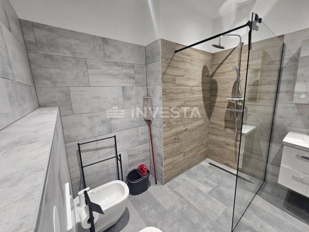In vendita un appartamento completamente ristrutturato al piano terra di un edificio austro-ungarico, a soli pochi minuti a piedi dalle bellissime spiagge e da tutti i servizi che Pola offre. Questo appartamento rinnovato di 71,96m² si trova nelle immediate vicinanze del mare. Ha un ingresso dalla strada e parcheggio gratuito accanto all'edificio. L'appartamento è composto da un corridoio, due camere da letto, un bagno, un soggiorno che conduce alla cucina e un ripostiglio. I muri sono spessi e in pietra, un aspetto messo in evidenza nella ristrutturazione del soggiorno. L'appartamento è completamente ristrutturato e venduto completamente arredato con attrezzature di alta qualità. Ogni stanza è dotata di aria condizionata e c'è anche il riscaldamento a pavimento. Nel bagno, in cucina e nel ripostiglio sono stati posati i pavimenti in piastrelle, mentre nelle camere da letto, nel soggiorno e nel corridoio è stato posato un laminato da 12 mm.
