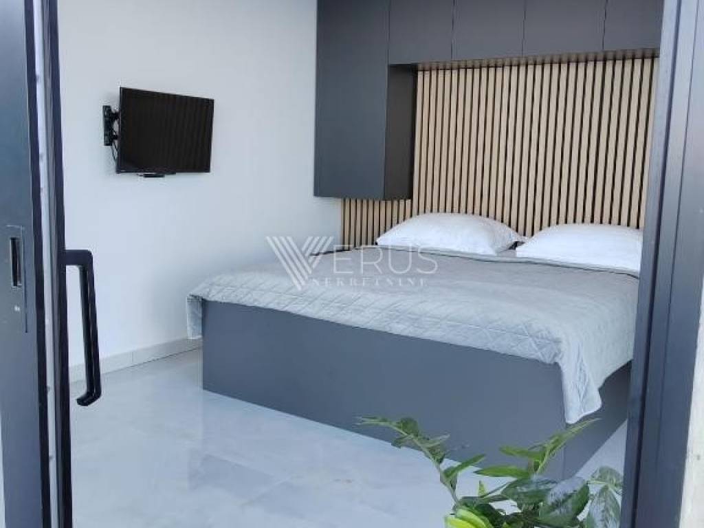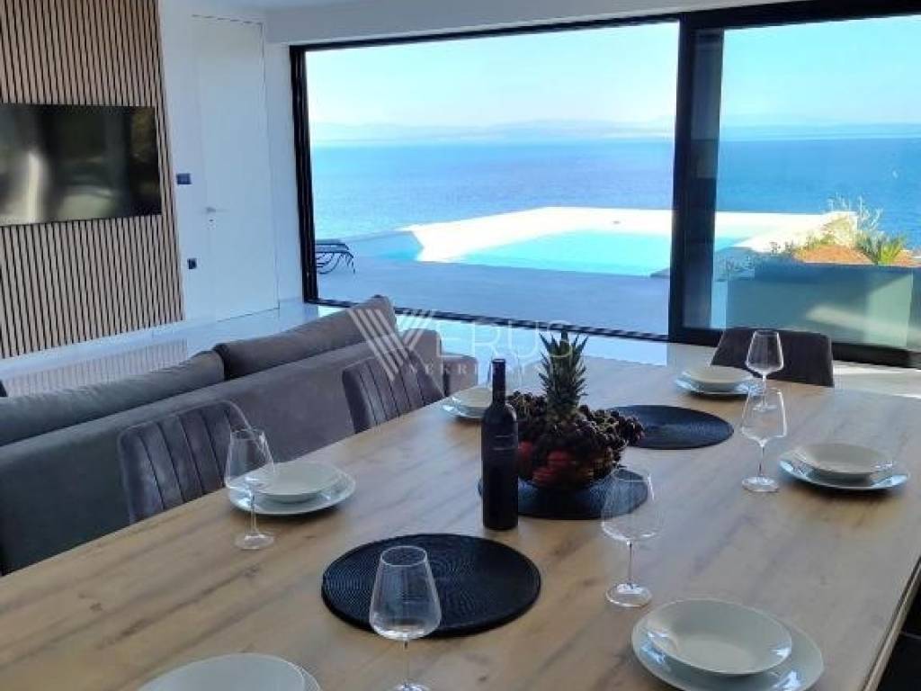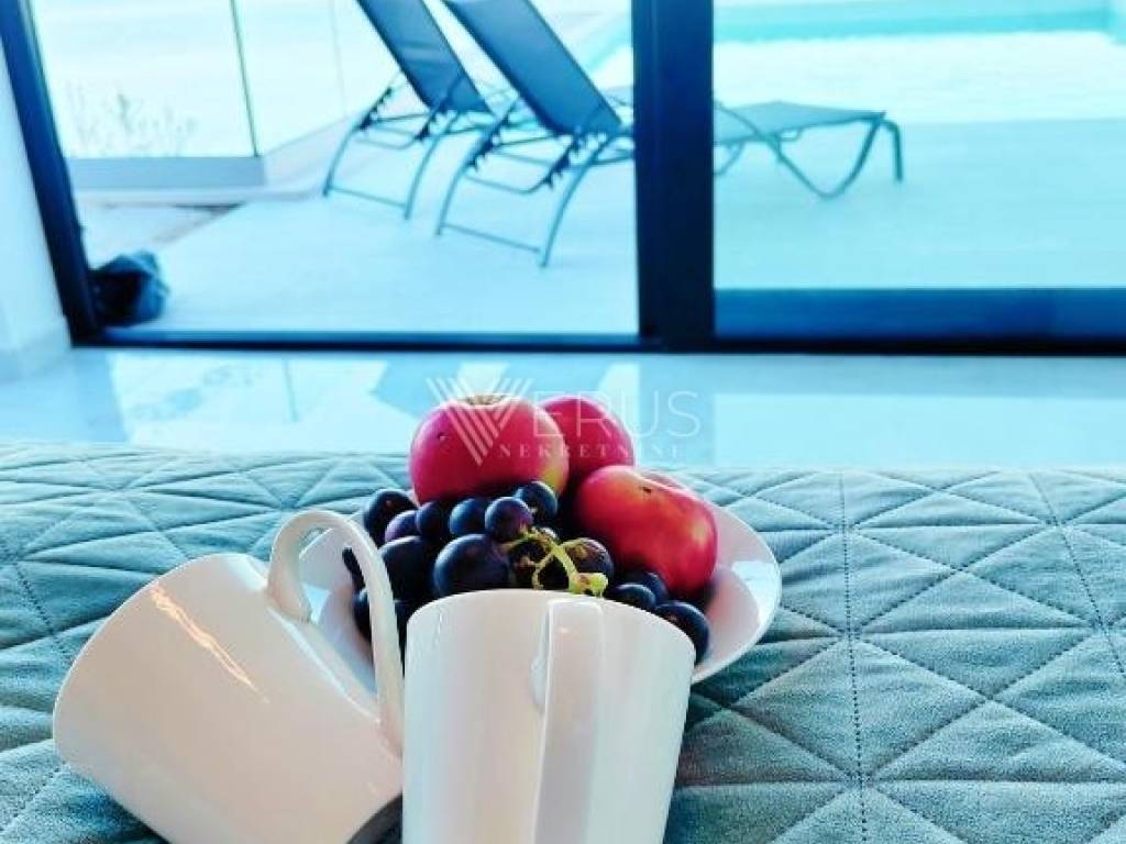 The interior consists of a spacious living room connected to the kitchen and dining room, one comfortable bedroom, and an elegantly decorated bathroom. From the living room there is access to a large terrace with a spectacular panoramic view of the sea, and the infinity pool of 5×10 m with salt water gives this property its true uniqueness, the perfect place to relax in complete privacy.