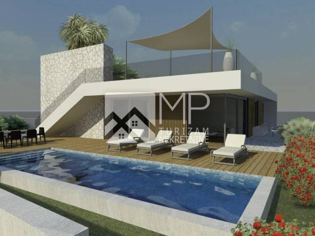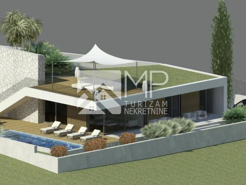 The emphasis is placed on the most attractive part, namely the roof terrace ( 170 m2 ), which is accessed by an external staircase, and which extends along the entire surface of the villa, from which a fantastic view of the sea and the islands is offered. Given the large area, it leaves the future owner with numerous possibilities for content and decoration (summer kitchen, jacuzzi, sundeck, socializing area providing a comfort zone...)