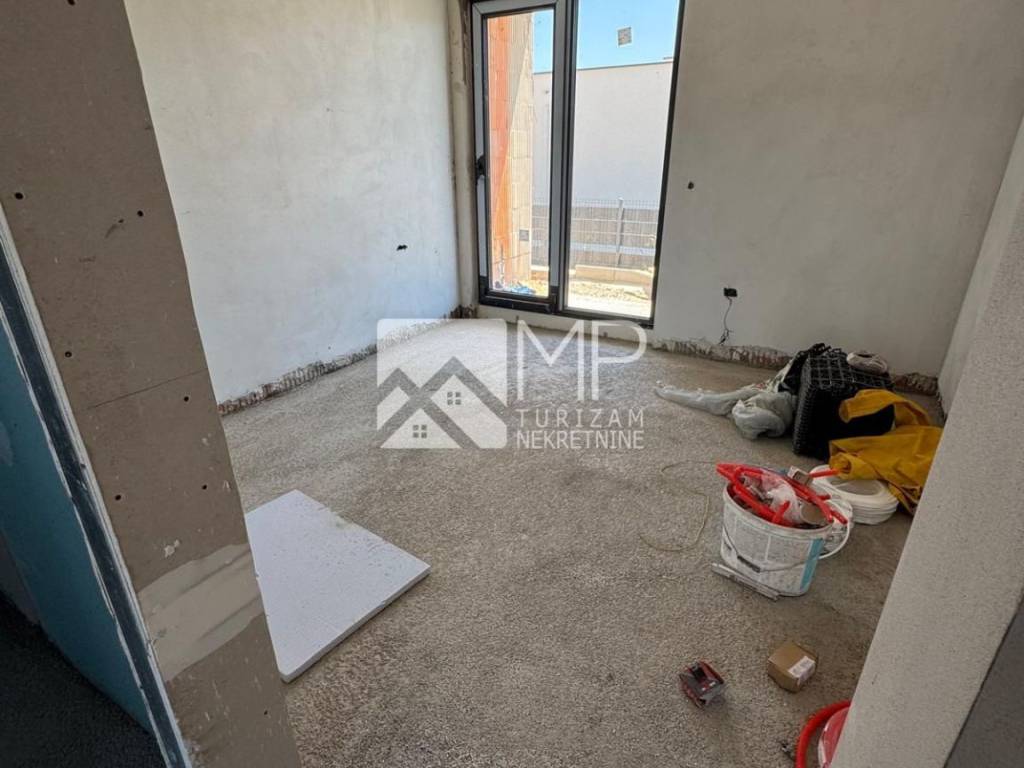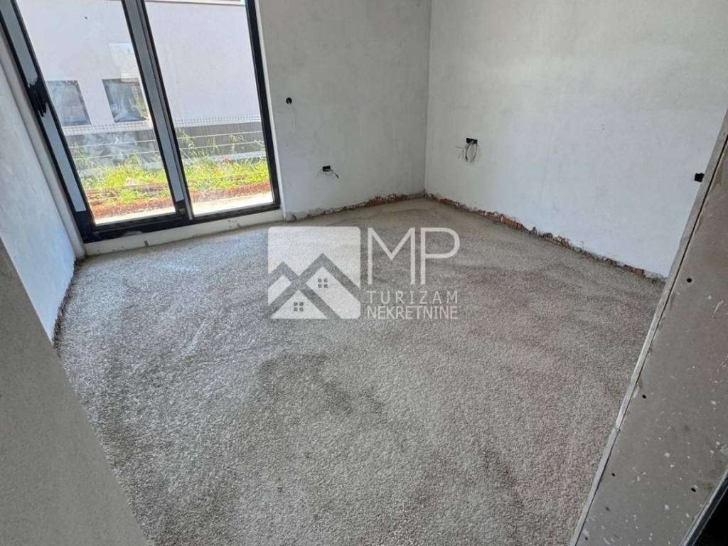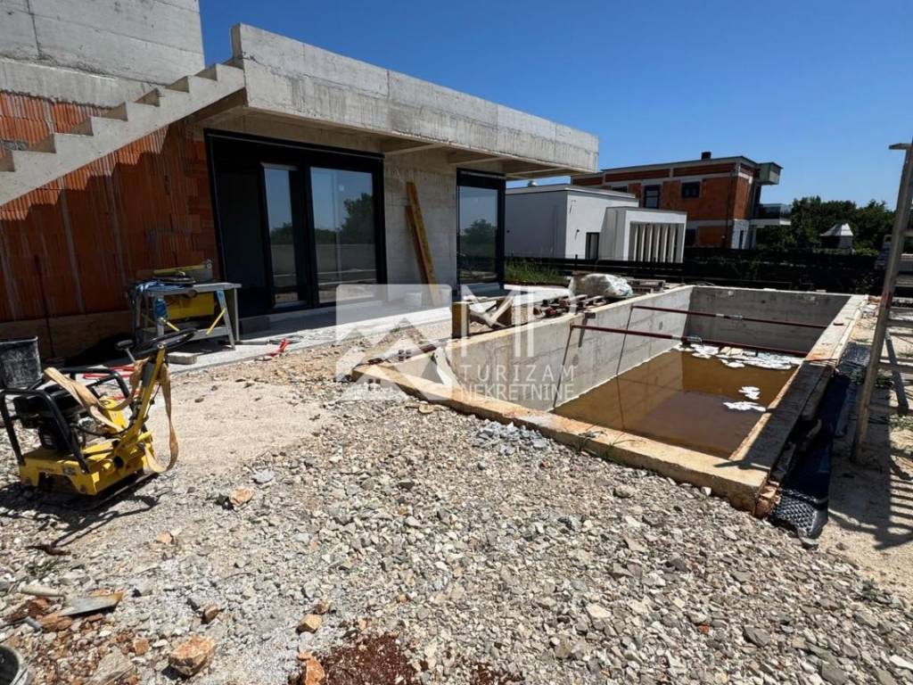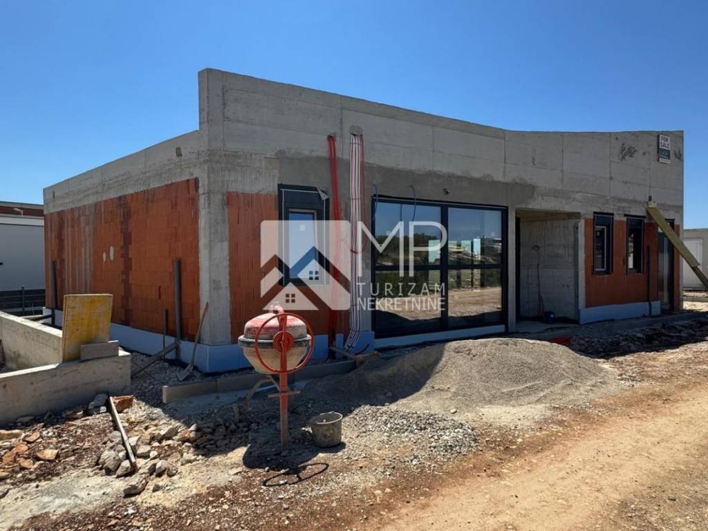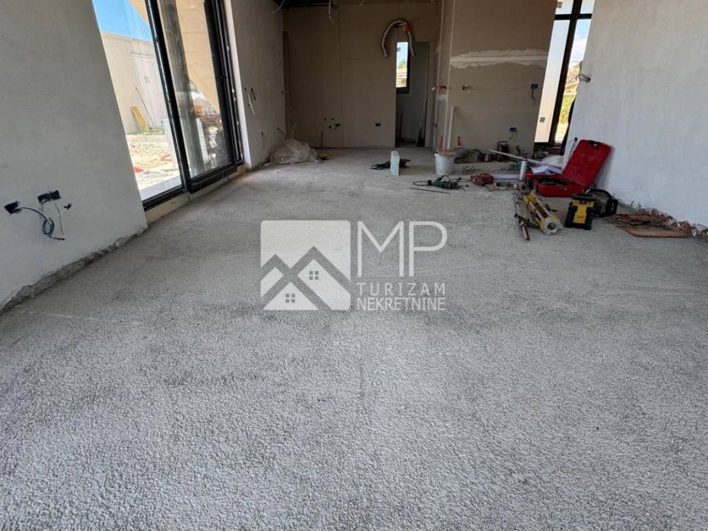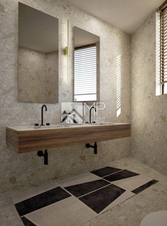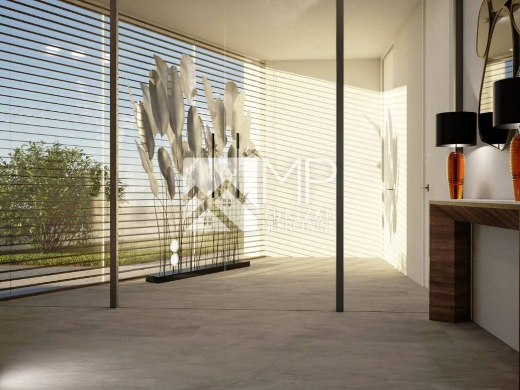 The villa, designed by a renowned architect, represents the perfect combination of modernity and artistic expression, conceived as a ground floor house with two bedrooms, each with its own bathroom, a spacious living room with a kitchen and dining room of the “open space” concept with large windows that provide natural light and a spectacular view of the swimming pool ideal for refreshment and enjoyment with family and friends, a guest toilet, a utility room, a hallway and a foyer.