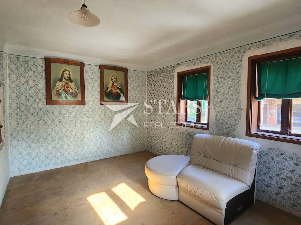 The house has a floor plan of 60 m², consisting of a basement and a first floor, which is essentially one apartment with 2 bedrooms and a living room. There is also a high attic space that could also serve as a living area. The house is in need of renovation. The large auxiliary building has a floor plan of 50 m² and its own basement. The smaller auxiliary building has a floor plan of 18 m².