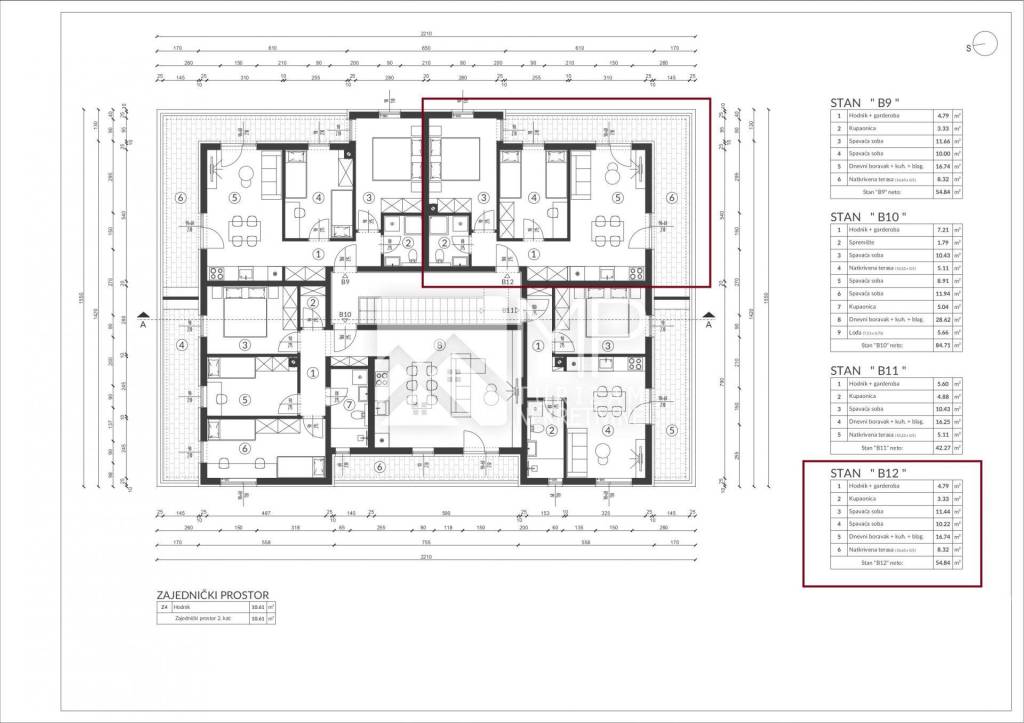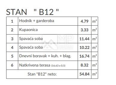 For sale is a functionally arranged two-bedroom apartment in a new building (designation: B12), with a living area of 54.84 m2 + one parking space of 3.12 m2, located on the second floor of the residential building "B" under construction.