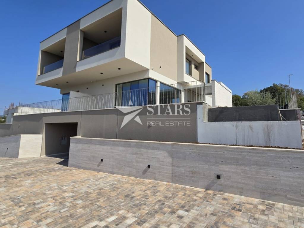 Located in an excellent position, just 200 meters from the Adriatic Sea, this luxurious three-story apartment in a semi-detached house impresses with its modern design, spacious interior, high-quality construction, and carefully crafted details.