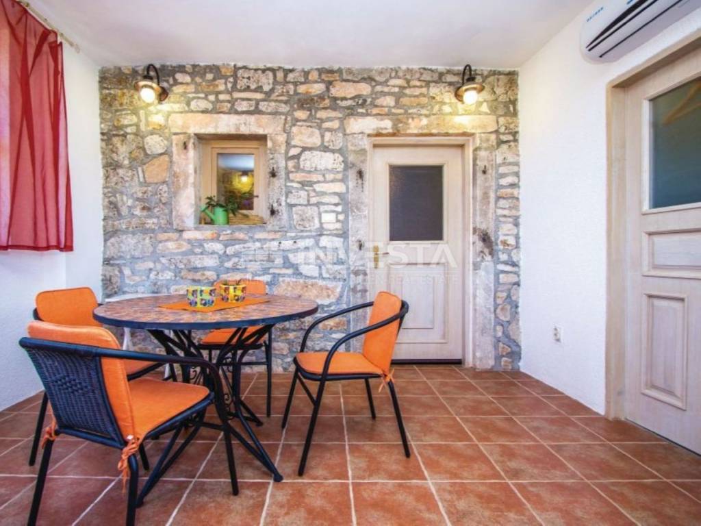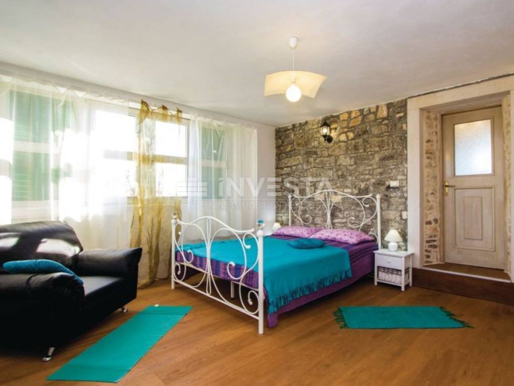 La tradizionale casa in pietra è stata completamente ristrutturata, preservando le caratteristiche originali che le conferiscono un fascino speciale. Pur emanando un'atmosfera autentica istriana, è dotata di servizi moderni che soddisfano le esigenze della vita contemporanea. Tutti e tre i piani sono progettati in modo funzionale e confortevole, e la terrazza all'ultimo piano offre una vista sul paesaggio naturale dominato dal verde e dalla tranquillità.