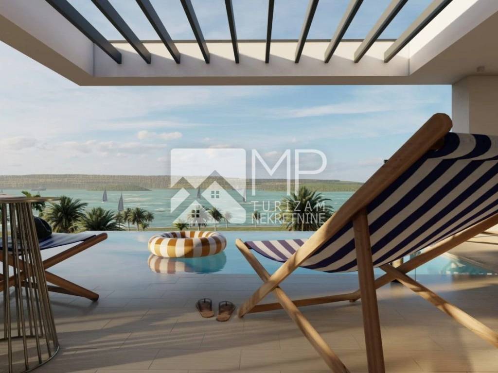 Experience the perfect blend of contemporary luxury, Mediterranean charm and complete privacy in this new development located just 200 meters from the sea, in the heart of beautiful Medulin. This exclusive villa of 187.82 m2 offers spacious floors, elegant design and modern luxury. The special feature of this property is the elevator that connects all floors, which allows easy access to all parts of the house and adds additional value and comfort. The swimming pool is located on the second floor, integrated with a terrace and a relaxation area, providing panoramic views and privacy, perfect for enjoying the outdoors.