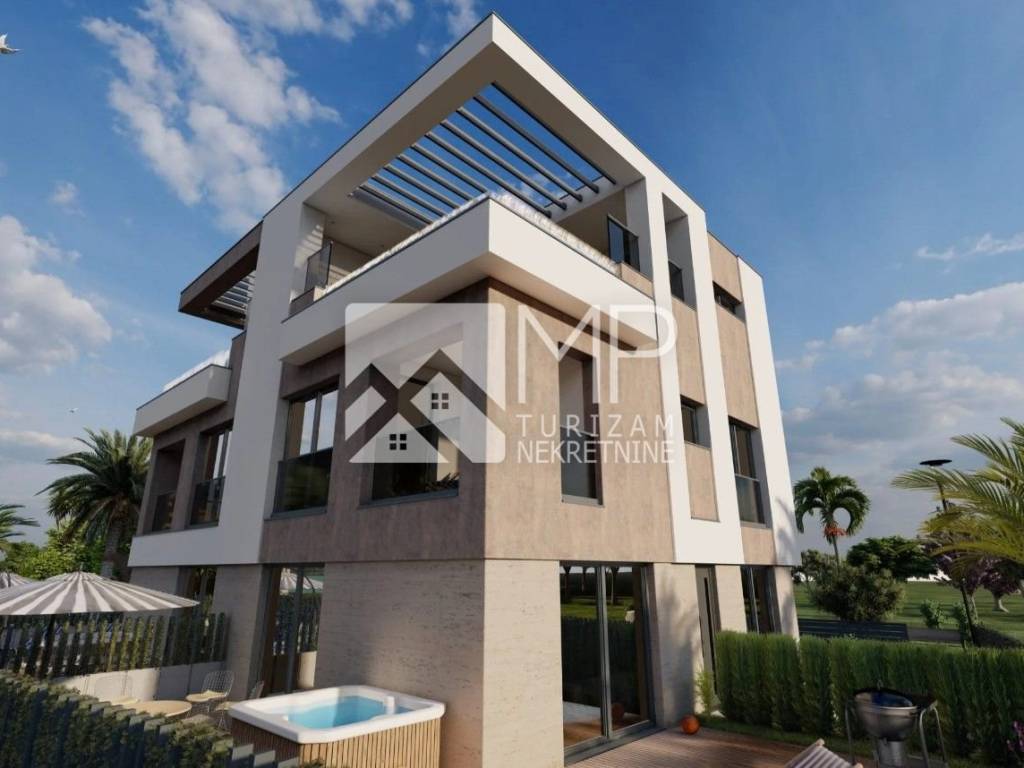Experience the perfect blend of contemporary luxury, Mediterranean charm and complete privacy in this new development located just 200 meters from the sea, in the heart of beautiful Medulin. This exclusive villa of 187.82 m2 offers spacious floors, elegant design and modern luxury. The special feature of this property is the elevator that connects all floors, which allows easy access to all parts of the house and adds additional value and comfort. The swimming pool is located on the second floor, integrated with a terrace and a relaxation area, providing panoramic views and privacy, perfect for enjoying the outdoors.