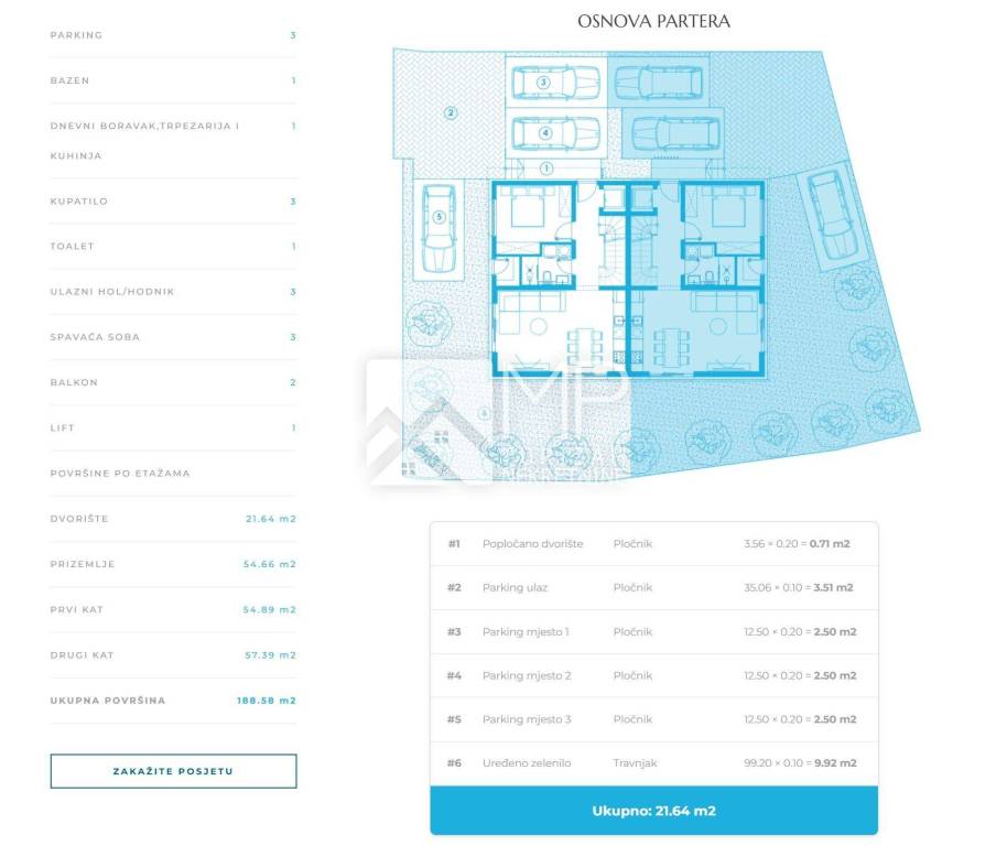 - Three parking spaces and a landscaped 90 m2 yard with Mediterranean greenery