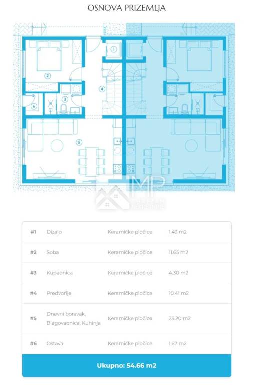 Ground floor – 54.66 m² - A spacious open-concept living area combines the kitchen, dining room and living room with access to the terrace ideal for family gatherings. The floor includes a bedroom, bathroom, storage room and a practical staircase, while an elevator connects all floors for maximum comfort.