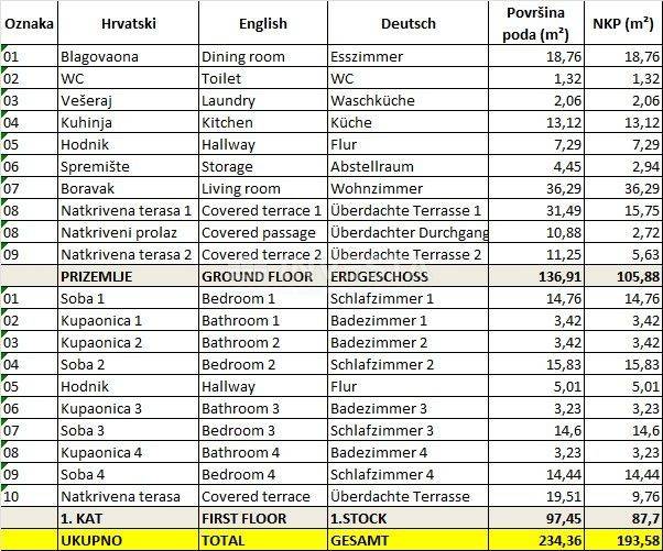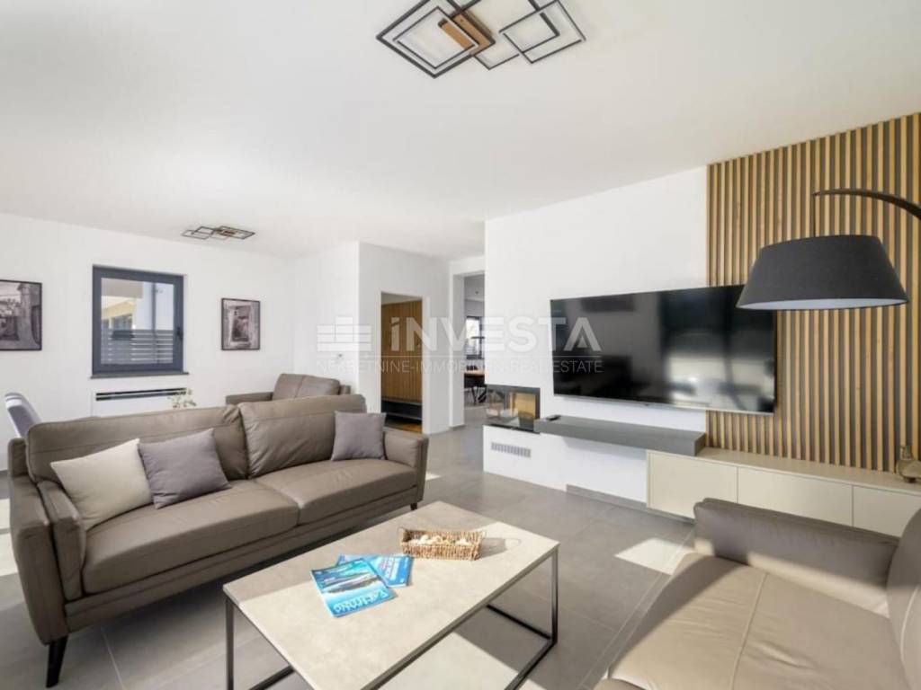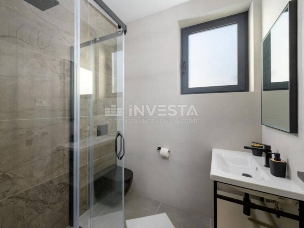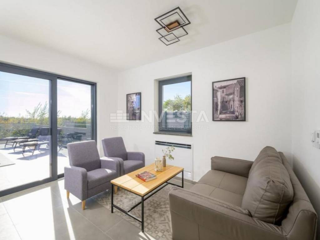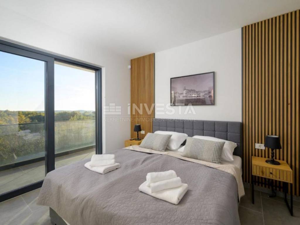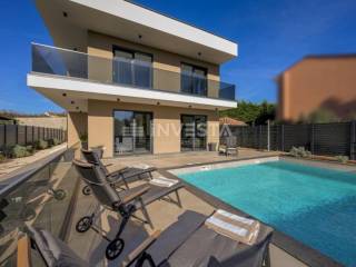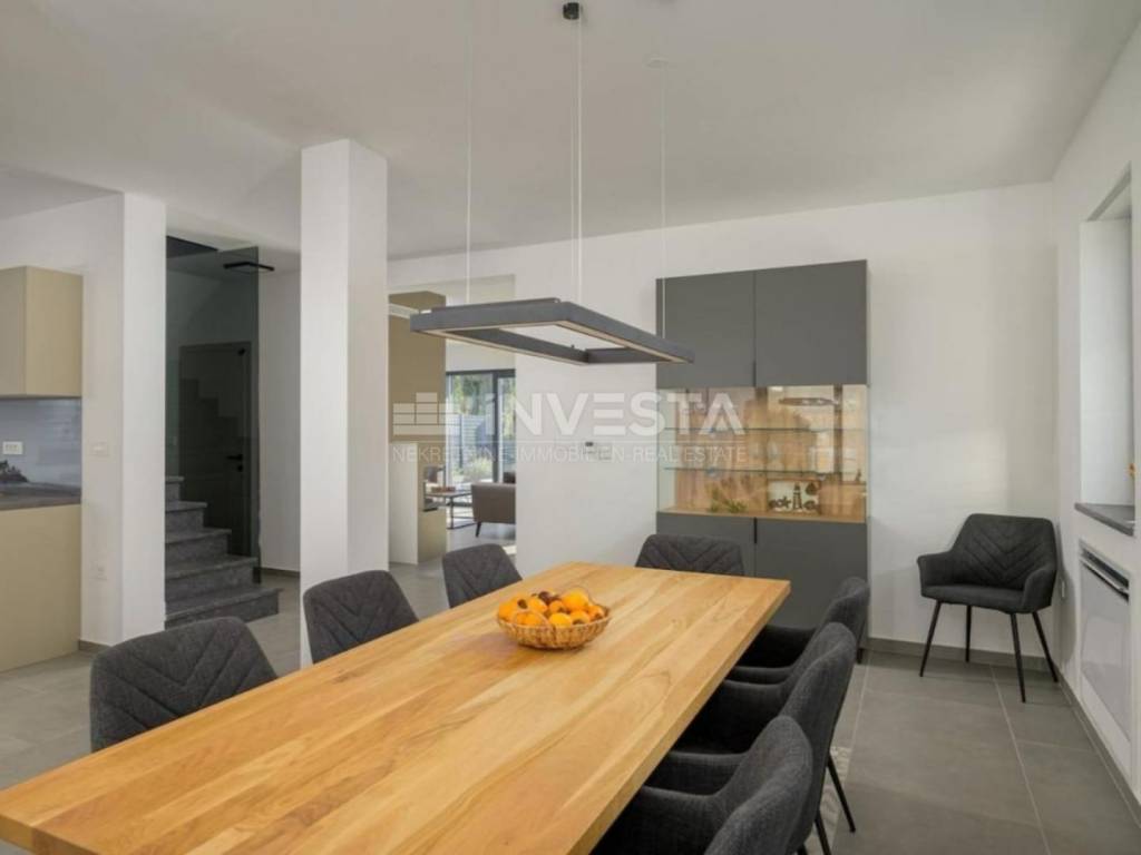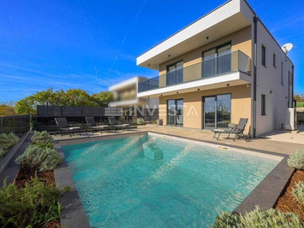 In un piccolo pittoresco paese nel comune di Svetvinčenat, è in vendita una bellissima villa di nuova costruzione con piscina. Ha una superficie totale di 244 m² ed è costruita su un terreno di 560 m². Si estende su piano terra e primo piano. Al piano terra si trova la zona giorno composta da un ampio soggiorno open space con cucina e zona pranzo, oltre a un bagno per gli ospiti. Dalla zona giorno si accede a un’area prendisole e a una piscina delle dimensioni di 7x5 m. Al primo piano della villa si trovano quattro camere da letto con bagni privati, due delle quali hanno accesso a un’ampia terrazza coperta con vista panoramica sulla natura circostante. Nel giardino c’è anche un parcheggio per 2-3 auto.