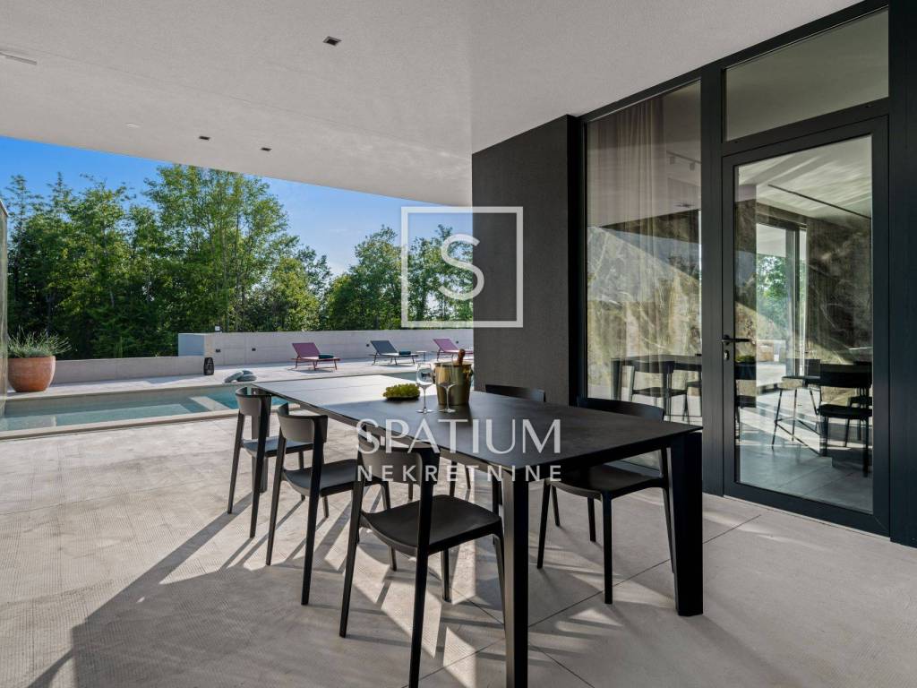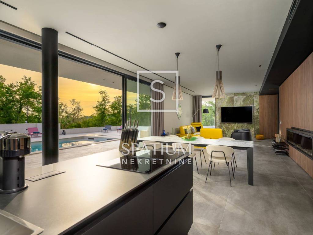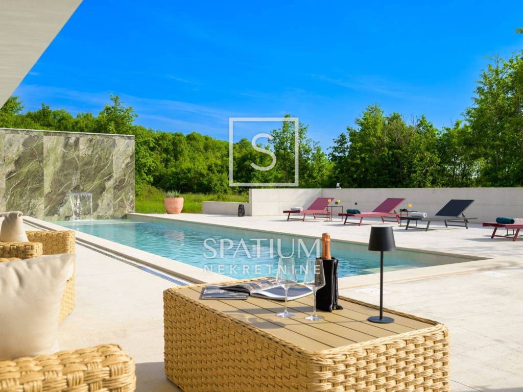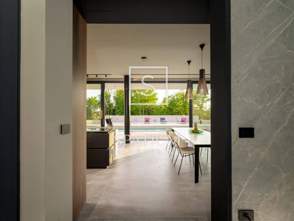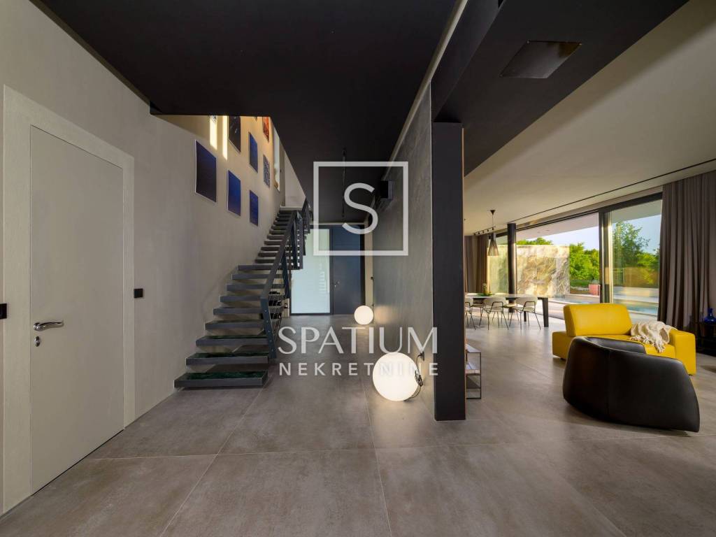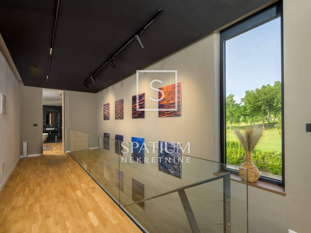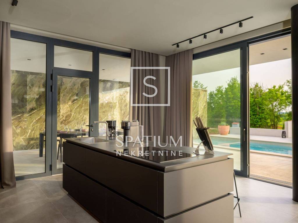 GROŽNJAN, ISTRIA, offriamo una lussuosa villa di design di nuova costruzione con piscina in un ambiente naturale, completa privacy, giardino di 2170 m2, con vista sul paesaggio di campi verdi e boschi. Villa moderna con una superficie abitabile di 300 m2, 222 m2 di terrazze coperte e 160 m2 di terrazze scoperte. Si compone di due piani, piano terra e primo piano collegati da scala interna. Piano terra: cucina, sala da pranzo e soggiorno open space con accesso al terrazzo, bagno ospiti, lavanderia con accesso sia dall'interno che dall'esterno e locale caldaia con ingresso esterno. 1° Piano: tre ampie camere da letto, ciascuna con il proprio bagno. Ogni camera ha accesso ad una terrazza coperta. Le pareti di vetro di grandi dimensioni garantiscono molta luce naturale nello spazio e consentono una bella vista. Il camino decorativo nel soggiorno, che cambia colore, contribuisce a creare un'atmosfera aggiuntiva. All'interno dell'ampio giardino, completamente arredato e ben curato, si trova una piscina di 61 mq, una zona solarium con cascata, una doccia esterna, una cucina esterna con zona pranzo coperta, uno spazio per la socializzazione e un parcheggio per quattro veicoli. Per la costruzione e l'arredamento sono stati utilizzati solo materiali di alta qualità e i più moderni accorgimenti, alcuni dei marchi più famosi sono sicuramente: - Guzzini, Artemide, Ticino per l'illuminazione - Florim Bologna per i pannelli murali interni ed esterni - Serrature/doccia Philippe Stark - Mobili Calligaris Italy - Attrezzatura cucina Nef - Soggiorno Dondi salotti - Attrezzatura camera da letto programma Hespo 5* - Attrezzatura bagno Hans Grohe - Attrezzatura bagno Axor - Mobili B&: B Italy - Attrezzatura cucina Global - Attrezzatura cucina Rosenthal - Attrezzatura cucina Mono A - Attrezzatura cucina Liebher e Attrezzatura cucina Bosh - Mobili Kartell Italia - Attrezzatura cucina Napoleon - Caminetti Deco Maribor - Aria condizionata Mitsubishi. Questa proprietà soddisfa le esigenze più esigenti con il suo aspetto moderno ed elegante, attrezzature di lusso e costruzione di alta qualità. Un'eccezionale opportunità per creare un comodo uso familiare o un ottimo investimento con un sicuro ritorno. Merita attenzione!! Grisignana, una piccola cittadina istriana dal grande significato culturale. Una città che vive d'arte, situata su una romantica collina circondata da uno splendido paesaggio, nella parte centrale dell'Istria. Conosciuto per la conservazione e la protezione dell'ambiente con l'accento sulla conservazione del patrimonio tradizionale istriano. Per altre informazioni contattateci con fiducia. Mislav Smolčić assistente alla mediazione +385 91 500 6757 mislav@spatium.hr Vesna Smolčić agente autorizzato +385 91 571 7682 vesna@spatium.hr Spatium nekretnine +385 51 452 479