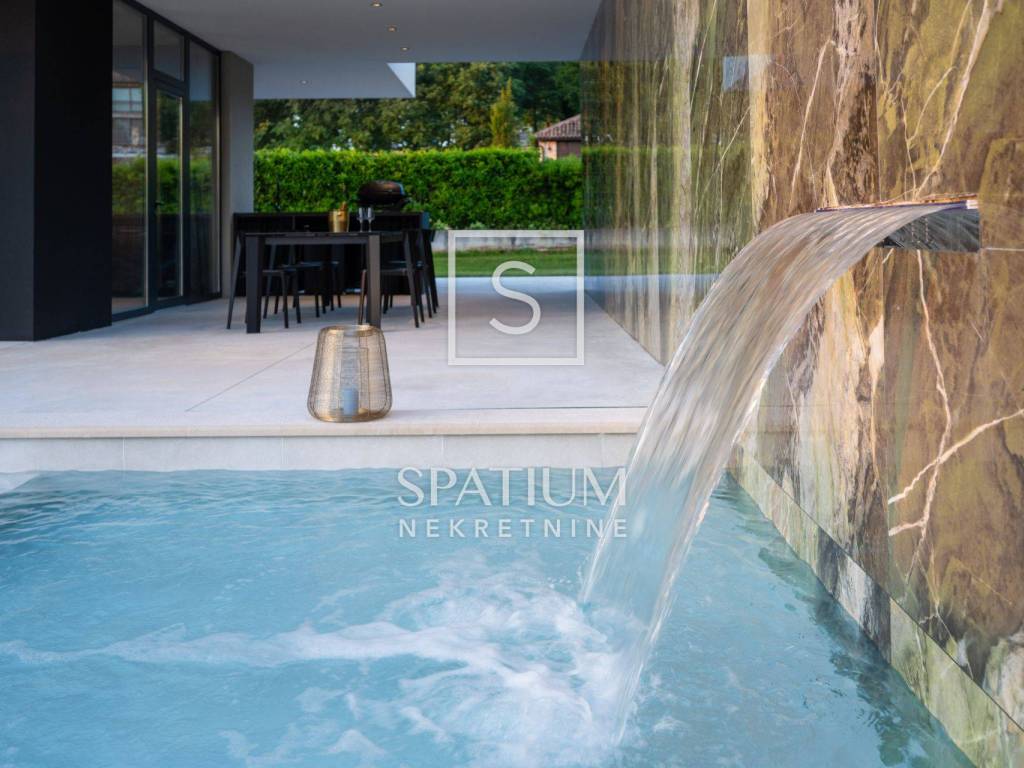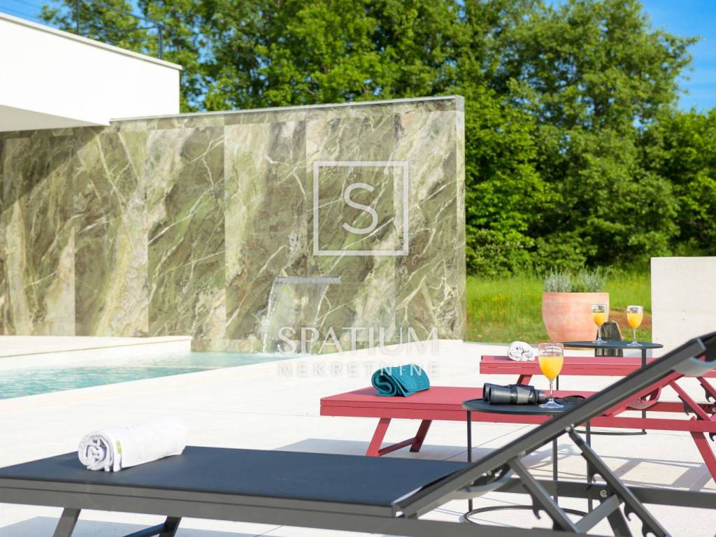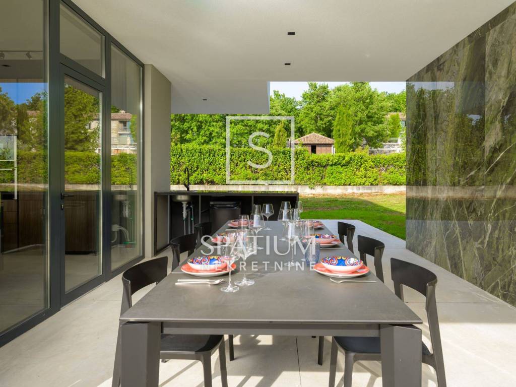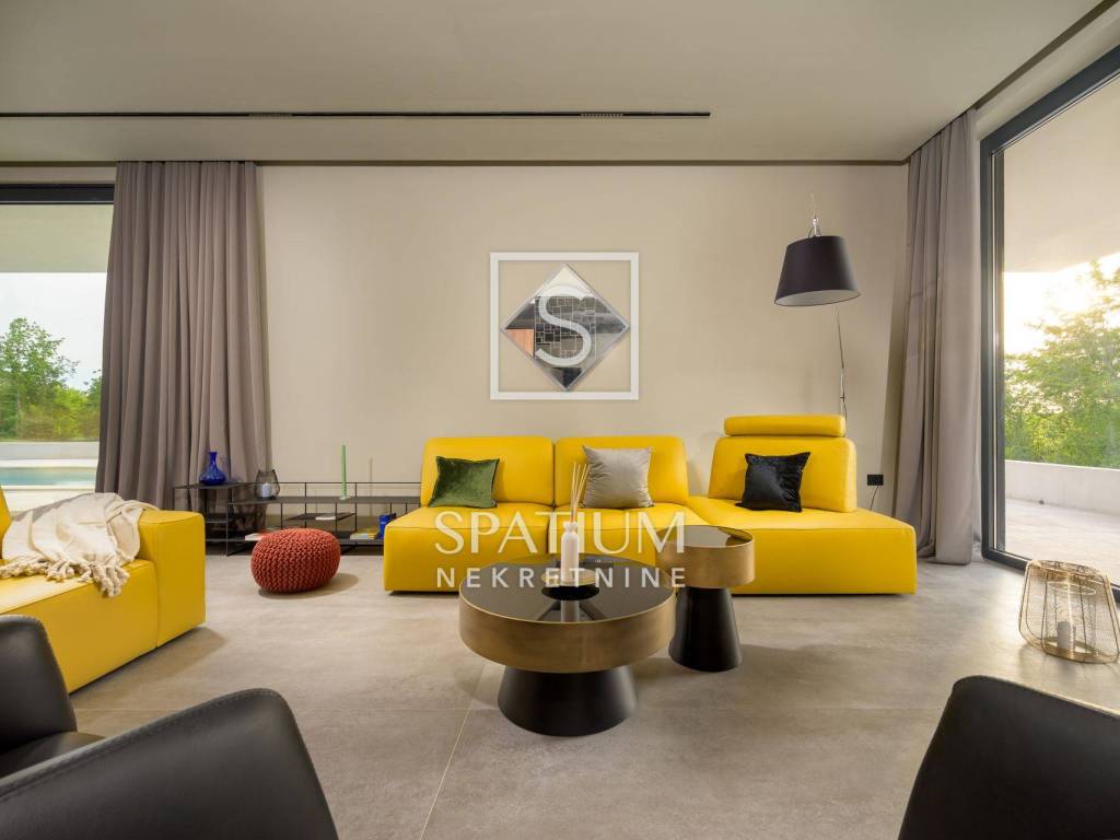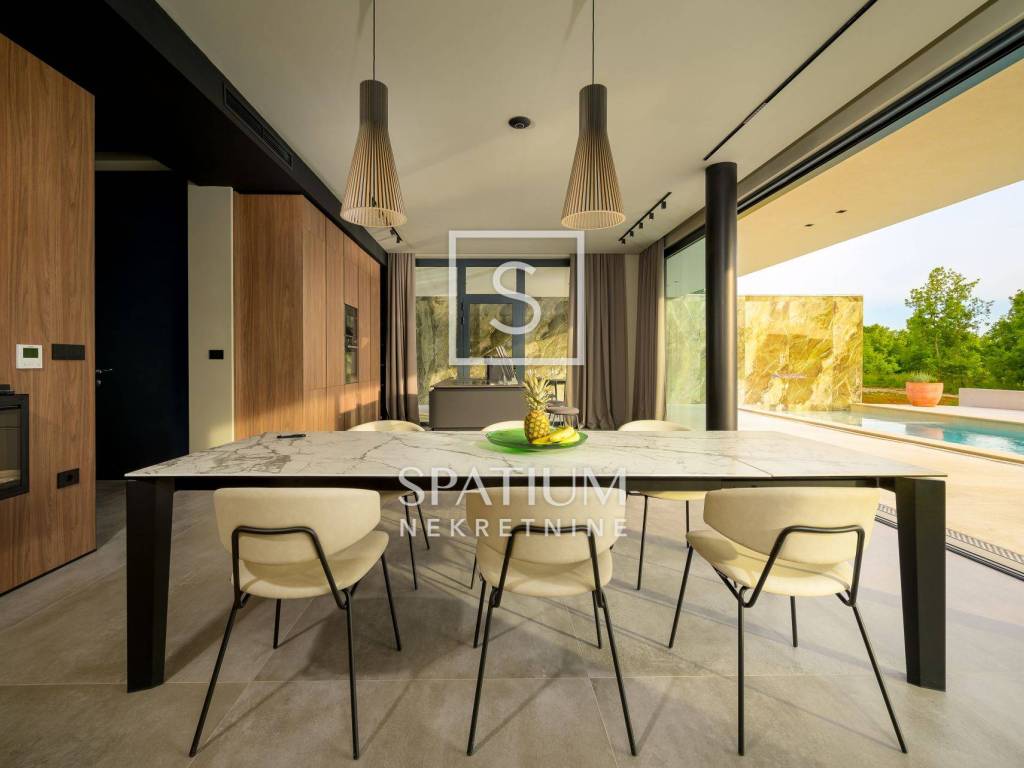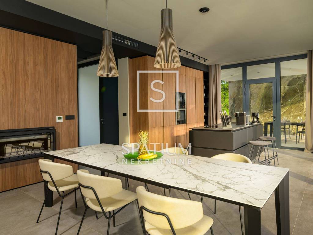 GROŽNJAN, ISTRIA, offriamo una lussuosa villa di design di nuova costruzione con piscina in un ambiente naturale, completa privacy, giardino di 2170 m2, con vista sul paesaggio di campi verdi e boschi. Villa moderna con una superficie abitabile di 300 m2, 222 m2 di terrazze coperte e 160 m2 di terrazze scoperte. Si compone di due piani, piano terra e primo piano collegati da scala interna. Piano terra: cucina, sala da pranzo e soggiorno open space con accesso al terrazzo, bagno ospiti, lavanderia con accesso sia dall'interno che dall'esterno e locale caldaia con ingresso esterno. 1° Piano: tre ampie camere da letto, ciascuna con il proprio bagno. Ogni camera ha accesso ad una terrazza coperta. Le pareti di vetro di grandi dimensioni garantiscono molta luce naturale nello spazio e consentono una bella vista. Il camino decorativo nel soggiorno, che cambia colore, contribuisce a creare un'atmosfera aggiuntiva. All'interno dell'ampio giardino, completamente arredato e ben curato, si trova una piscina di 61 mq, una zona solarium con cascata, una doccia esterna, una cucina esterna con zona pranzo coperta, uno spazio per la socializzazione e un parcheggio per quattro veicoli. Per la costruzione e l'arredamento sono stati utilizzati solo materiali di alta qualità e i più moderni accorgimenti, alcuni dei marchi più famosi sono sicuramente: - Guzzini, Artemide, Ticino per l'illuminazione - Florim Bologna per i pannelli murali interni ed esterni - Serrature/doccia Philippe Stark - Mobili Calligaris Italy - Attrezzatura cucina Nef - Soggiorno Dondi salotti - Attrezzatura camera da letto programma Hespo 5* - Attrezzatura bagno Hans Grohe - Attrezzatura bagno Axor - Mobili B&: B Italy - Attrezzatura cucina Global - Attrezzatura cucina Rosenthal - Attrezzatura cucina Mono A - Attrezzatura cucina Liebher e Attrezzatura cucina Bosh - Mobili Kartell Italia - Attrezzatura cucina Napoleon - Caminetti Deco Maribor - Aria condizionata Mitsubishi. Questa proprietà soddisfa le esigenze più esigenti con il suo aspetto moderno ed elegante, attrezzature di lusso e costruzione di alta qualità. Un'eccezionale opportunità per creare un comodo uso familiare o un ottimo investimento con un sicuro ritorno. Merita attenzione!! Grisignana, una piccola cittadina istriana dal grande significato culturale. Una città che vive d'arte, situata su una romantica collina circondata da uno splendido paesaggio, nella parte centrale dell'Istria. Conosciuto per la conservazione e la protezione dell'ambiente con l'accento sulla conservazione del patrimonio tradizionale istriano. Per altre informazioni contattateci con fiducia. Mislav Smolčić assistente alla mediazione +385 91 500 6757 mislav@spatium.hr Vesna Smolčić agente autorizzato +385 91 571 7682 vesna@spatium.hr Spatium nekretnine +385 51 452 479