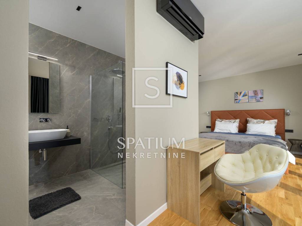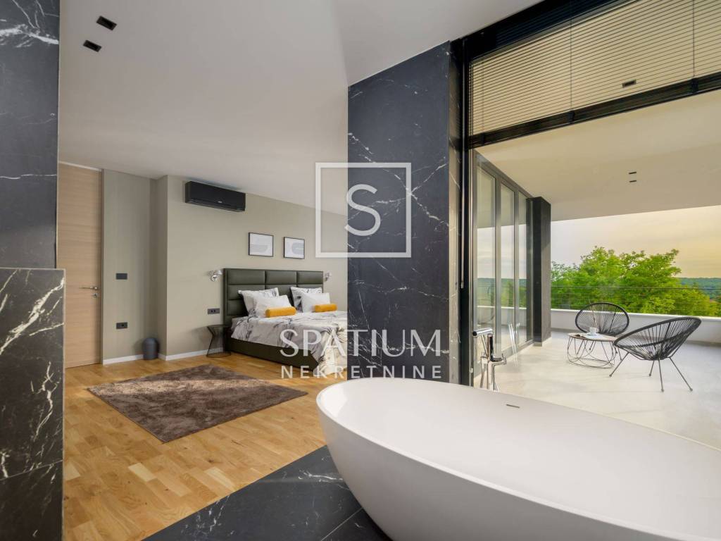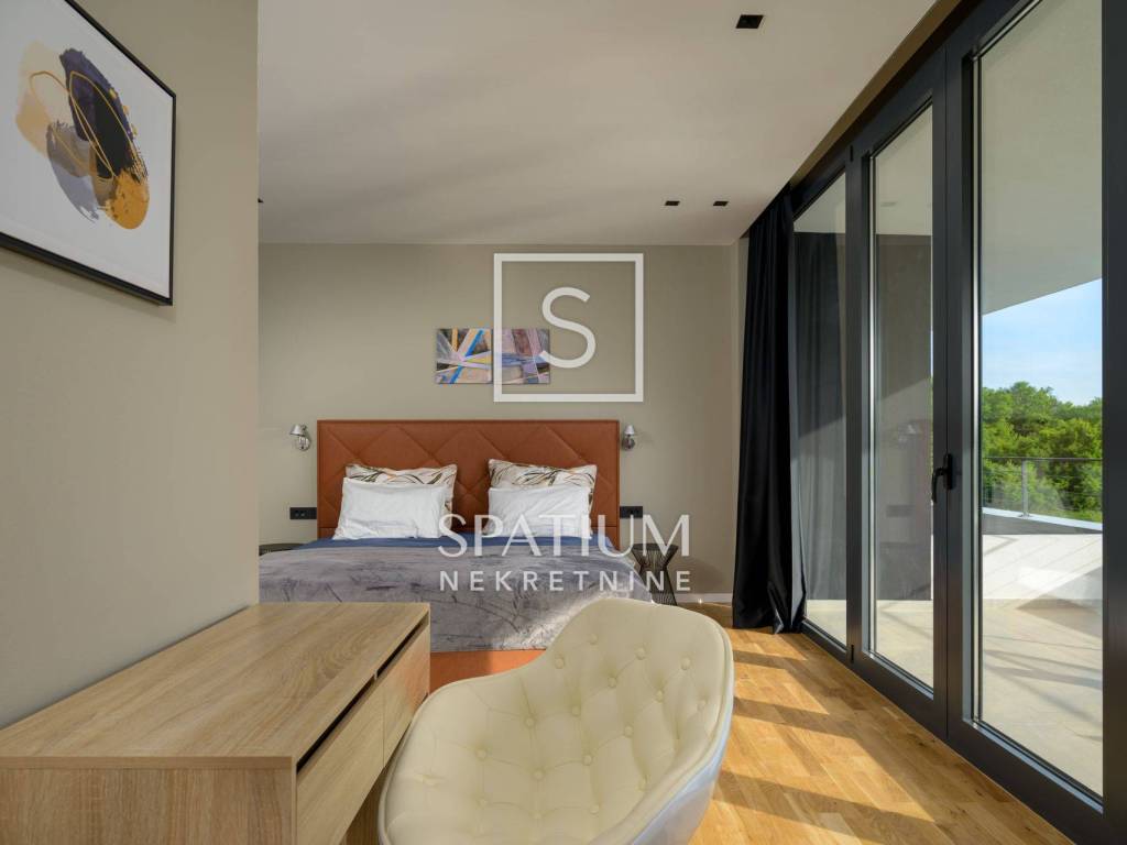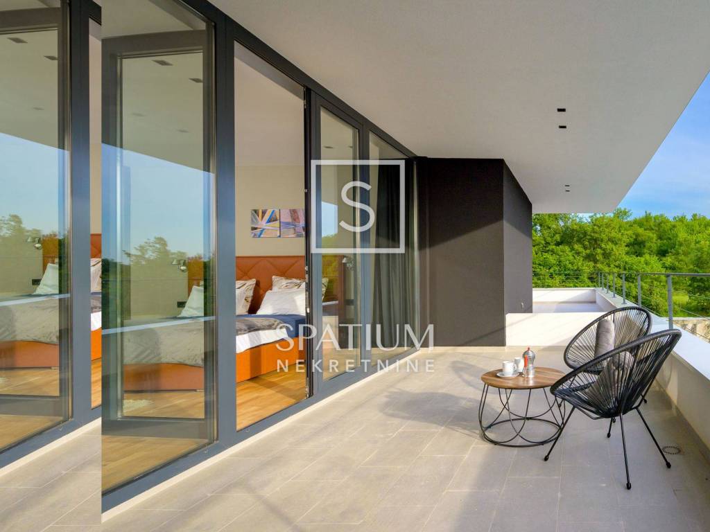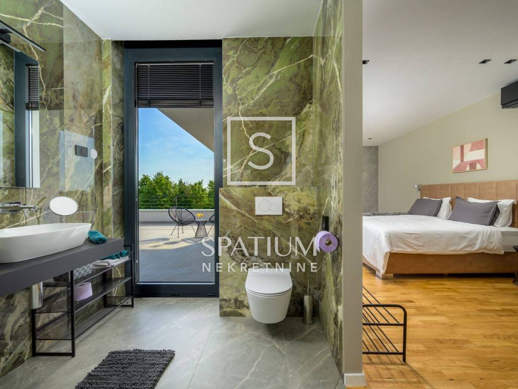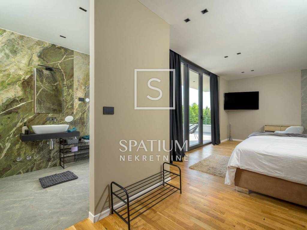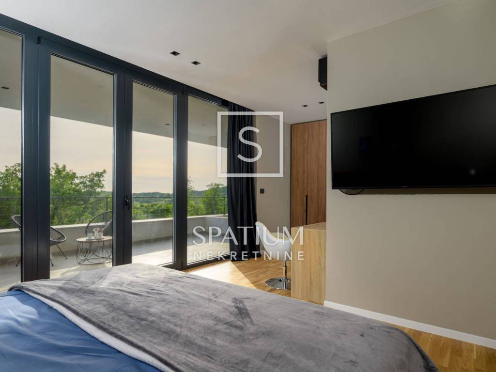 GROŽNJAN, ISTRIA, offriamo una lussuosa villa di design di nuova costruzione con piscina in un ambiente naturale, completa privacy, giardino di 2170 m2, con vista sul paesaggio di campi verdi e boschi. Villa moderna con una superficie abitabile di 300 m2, 222 m2 di terrazze coperte e 160 m2 di terrazze scoperte. Si compone di due piani, piano terra e primo piano collegati da scala interna. Piano terra: cucina, sala da pranzo e soggiorno open space con accesso al terrazzo, bagno ospiti, lavanderia con accesso sia dall'interno che dall'esterno e locale caldaia con ingresso esterno. 1° Piano: tre ampie camere da letto, ciascuna con il proprio bagno. Ogni camera ha accesso ad una terrazza coperta. Le pareti di vetro di grandi dimensioni garantiscono molta luce naturale nello spazio e consentono una bella vista. Il camino decorativo nel soggiorno, che cambia colore, contribuisce a creare un'atmosfera aggiuntiva. All'interno dell'ampio giardino, completamente arredato e ben curato, si trova una piscina di 61 mq, una zona solarium con cascata, una doccia esterna, una cucina esterna con zona pranzo coperta, uno spazio per la socializzazione e un parcheggio per quattro veicoli. Per la costruzione e l'arredamento sono stati utilizzati solo materiali di alta qualità e i più moderni accorgimenti, alcuni dei marchi più famosi sono sicuramente: - Guzzini, Artemide, Ticino per l'illuminazione - Florim Bologna per i pannelli murali interni ed esterni - Serrature/doccia Philippe Stark - Mobili Calligaris Italy - Attrezzatura cucina Nef - Soggiorno Dondi salotti - Attrezzatura camera da letto programma Hespo 5* - Attrezzatura bagno Hans Grohe - Attrezzatura bagno Axor - Mobili B&: B Italy - Attrezzatura cucina Global - Attrezzatura cucina Rosenthal - Attrezzatura cucina Mono A - Attrezzatura cucina Liebher e Attrezzatura cucina Bosh - Mobili Kartell Italia - Attrezzatura cucina Napoleon - Caminetti Deco Maribor - Aria condizionata Mitsubishi. Questa proprietà soddisfa le esigenze più esigenti con il suo aspetto moderno ed elegante, attrezzature di lusso e costruzione di alta qualità. Un'eccezionale opportunità per creare un comodo uso familiare o un ottimo investimento con un sicuro ritorno. Merita attenzione!! Grisignana, una piccola cittadina istriana dal grande significato culturale. Una città che vive d'arte, situata su una romantica collina circondata da uno splendido paesaggio, nella parte centrale dell'Istria. Conosciuto per la conservazione e la protezione dell'ambiente con l'accento sulla conservazione del patrimonio tradizionale istriano. Per altre informazioni contattateci con fiducia. Mislav Smolčić assistente alla mediazione +385 91 500 6757 mislav@spatium.hr Vesna Smolčić agente autorizzato +385 91 571 7682 vesna@spatium.hr Spatium nekretnine +385 51 452 479