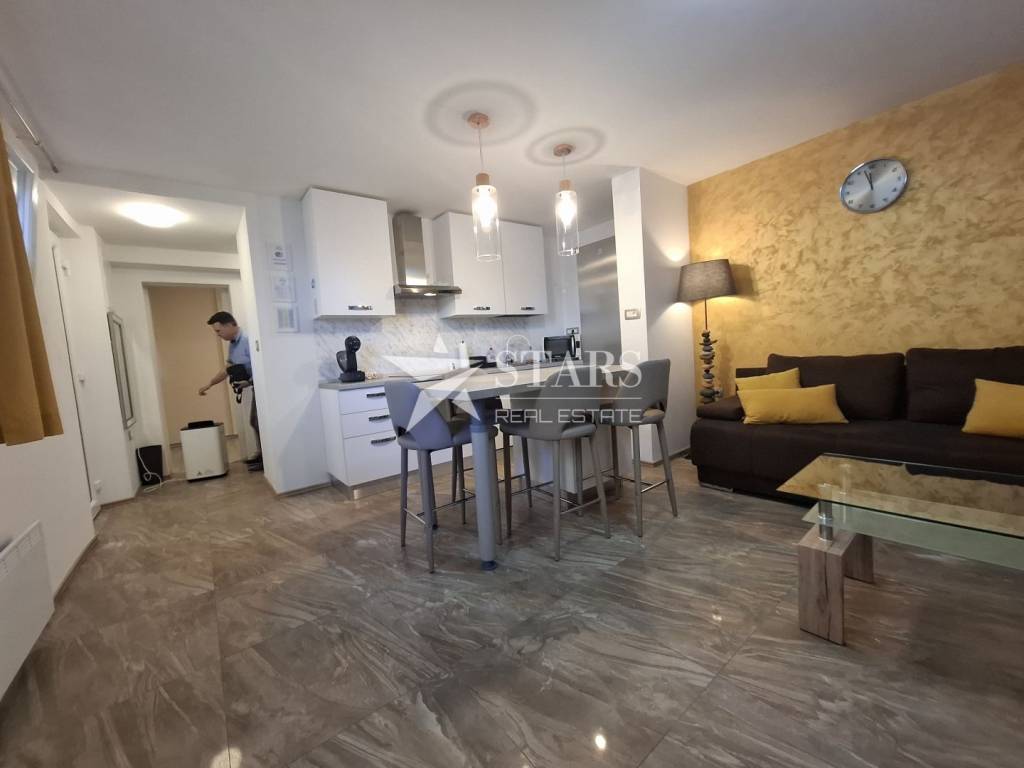 For sale is a newly furnished and fully renovated 39.10 m² apartment on the ground floor of a smaller residential building. It consists of a bedroom, bathroom with electric underfloor heating, and a living room with kitchen and dining area. Heating and cooling are provided via an air conditioning unit and Norwegian electric radiators.