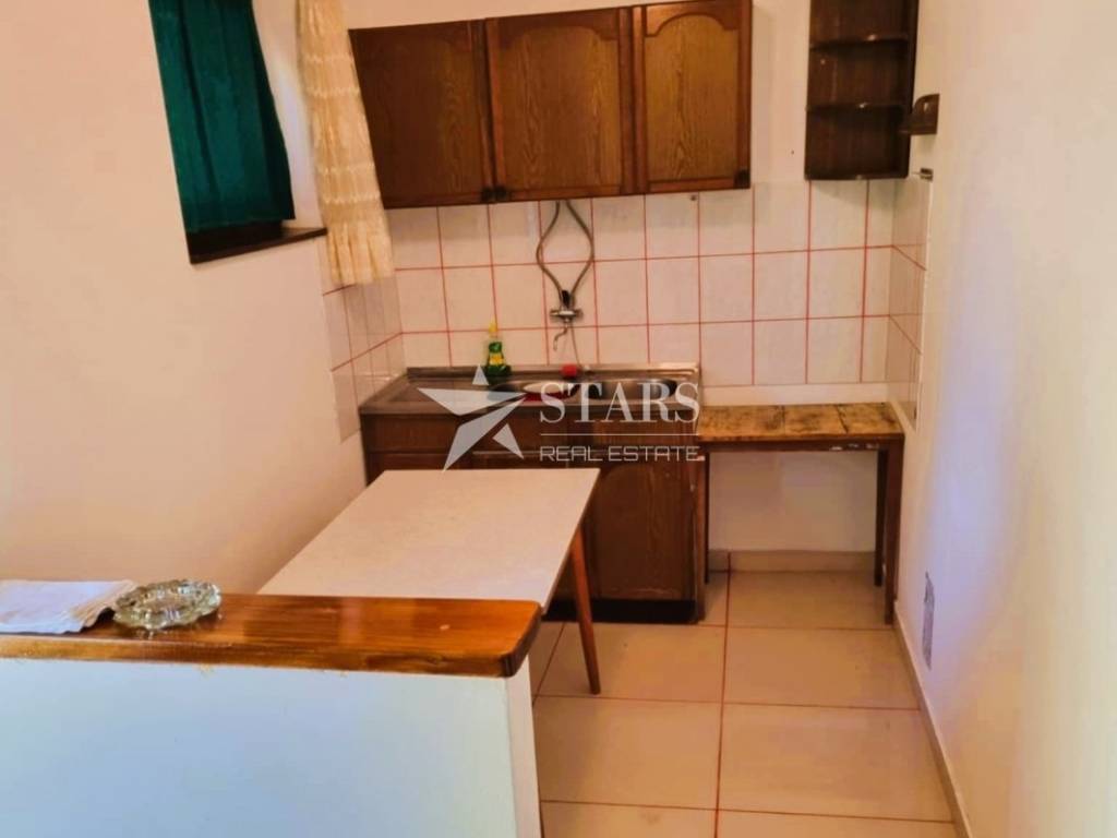 Small kitchen, living room and toilet on the ground floor